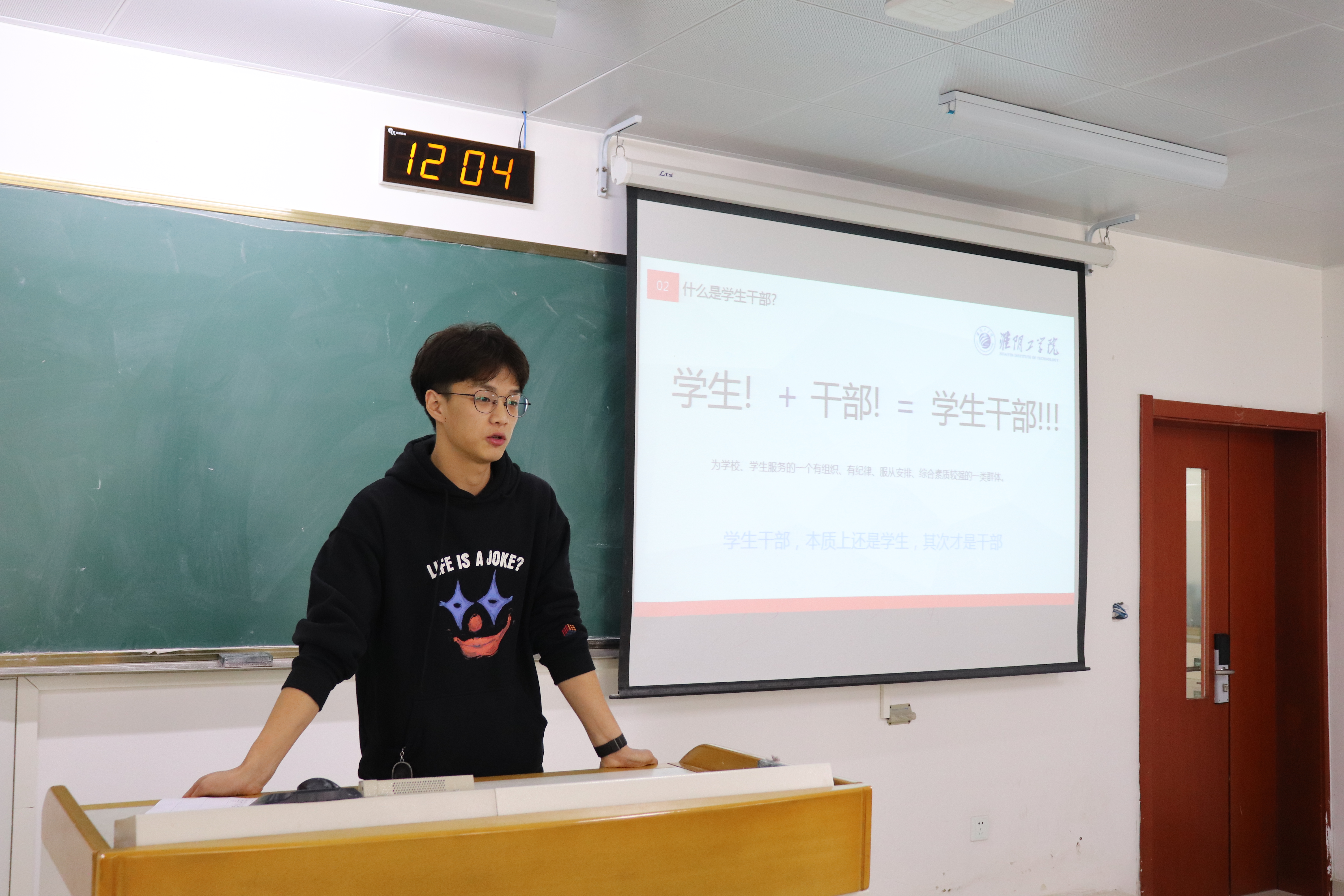接着,聂强学长向大家提出,我们作为员工干部应该具备的四个素质条件。