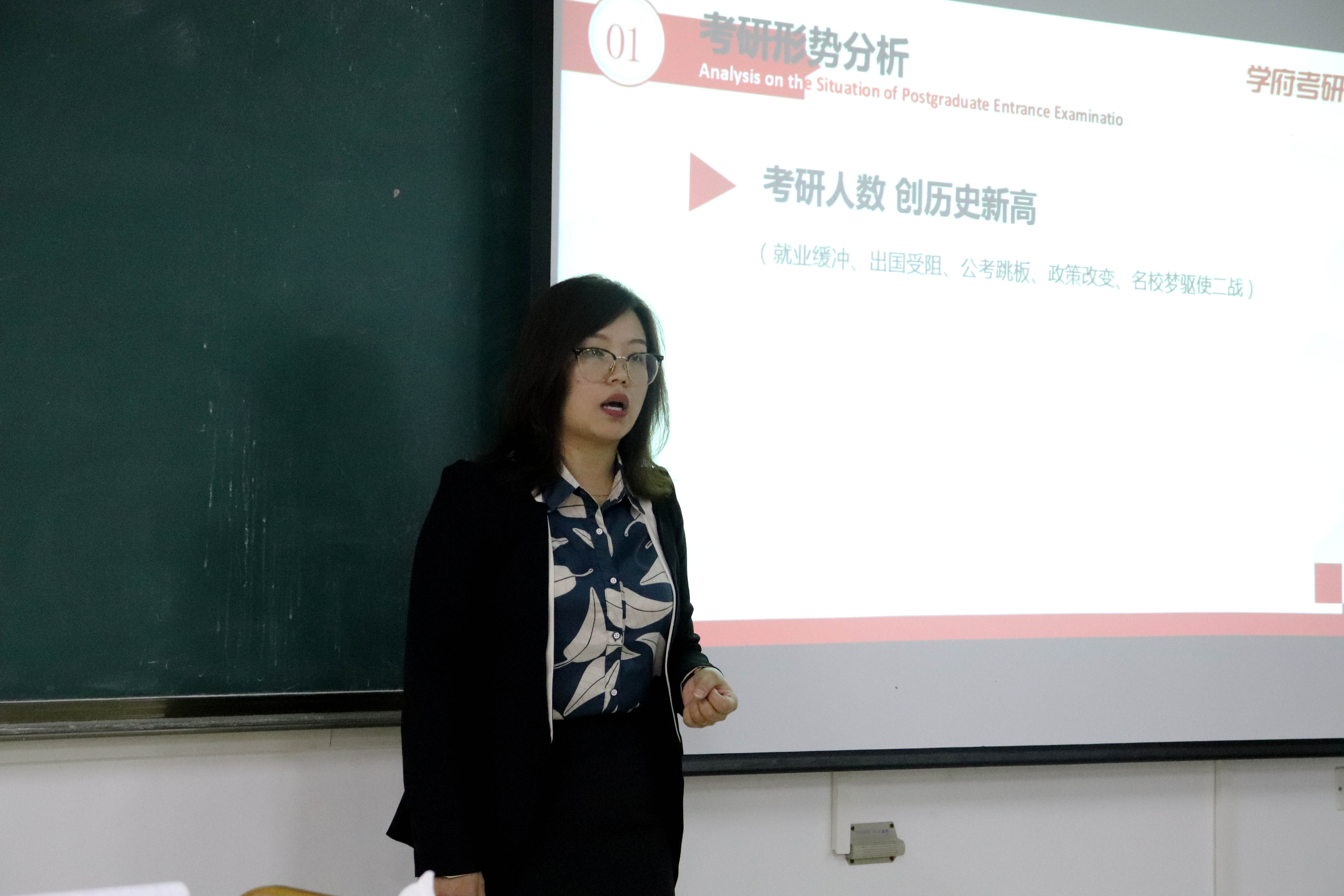 为了使各位备战考研的员工们更加深入了解考研的各方面情况以及规划,公司在10月20日晚召开考研复习规划讲座。由高继英讲师主持讲座,各年级备考生参加讲座。