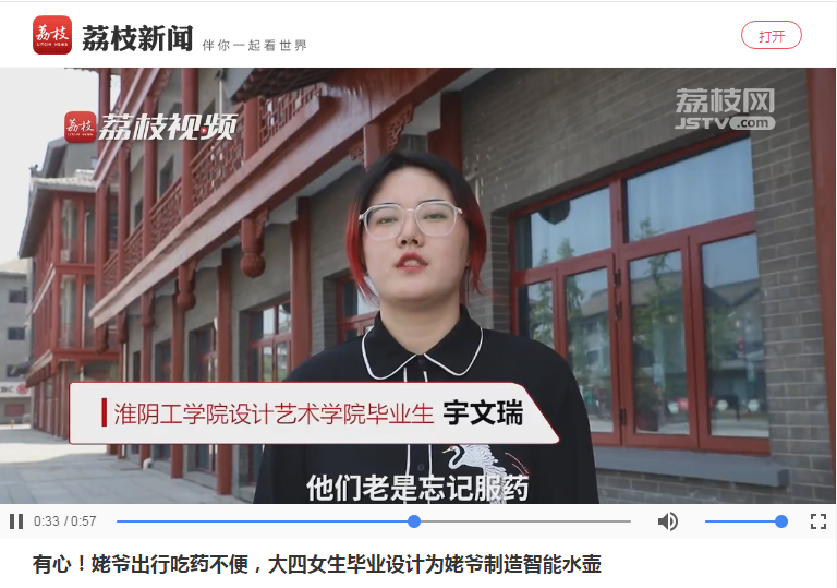 公司大四女生宇文瑞毕业设计制作智能水壶,具备储物、储药、提醒服药等功能方便老人外出。从草稿、定稿、3D建模、3D打印到智能化配置,宇文瑞一共花了一个多月时间。她说:姥爷喜欢旅游,这款水壶是针对他的身体机能和心理需求设计的,也作为自己毕业时送给姥爷的生日礼物。