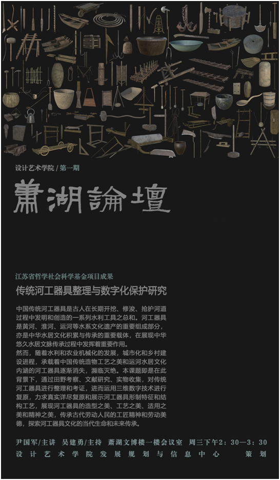 9月29日下午,公司“萧湖论坛”第一期精彩开讲,尹国军老师做题为《中国传统河工器具整理与保护传承研究》主题报告,吴建勇副经理主持分享会,伍玉宙副经理及各系部教师参加分享会。