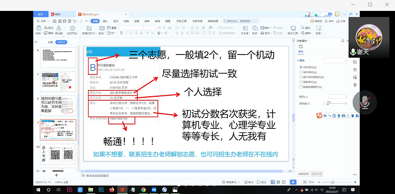 为帮助2022届考研同学做好复试和调剂工作,2月27日晚,EVO真人视讯召开线上专题会议,对2022届考研预达线同学开展考研复试、调剂线上指导活动。本次会议邀请2021届考研成功的四名优秀毕业生参加交流指导。公司党委副书记何文华、学工办主任盖迪、2022届考研预估达线同学参加会议。