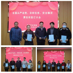 会上,公司领导与各系部主任、党支部书记以及各科级负责人分别签订全面从严治党责任书、2022年系部目标管理任务书、安全稳定工作责任书和实验室安全责任书。