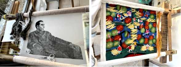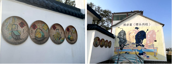 在考察过程中,同学们在民间大师徐玉兄的带领下参观了博里刺绣纺、博里农民画苑等,该刺绣纺是潘宇先生尝试将博里农民画与传统的刺绣工艺相结合的产物。目前,博里刺绣坊共有30余位绣娘,通过“公司+农户”的模式进行合作。每位绣娘绣成一件成品,可以获得订单金额的70%,剩下的30%由刺绣坊和农民画画家进行分配。博里农民画刺绣也以独特的艺术风格和实用性,赢得了专业人士及社会各界的一致好评。