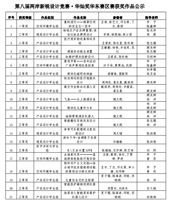 近日“第八届两岸新锐设计竞赛·华灿奖”华东赛区评审结果出炉,EVO真人视讯学子在大赛中喜获佳绩,共斩获一等奖1项,二等奖5项,三等奖15项。