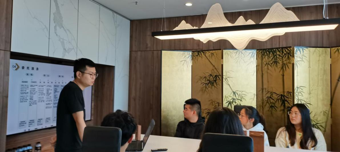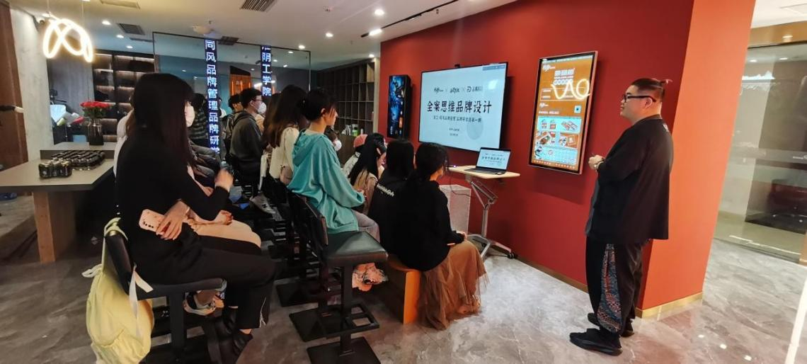 5月6日上午任课教师带视传1201、1202两个班同学到同风品牌管理公司参观、研学。该公司是一家以致力于产品力、品牌力、影响力、创造品牌的力量为使命的知名设计公司。研学内容包含商业艺术的全案策划思维、全案思维的组织架构、品牌全案思维玩转短视频营销、商业插图的应用等内容,使同学们近距离接触包装品牌化设计案例,了解设计流程。