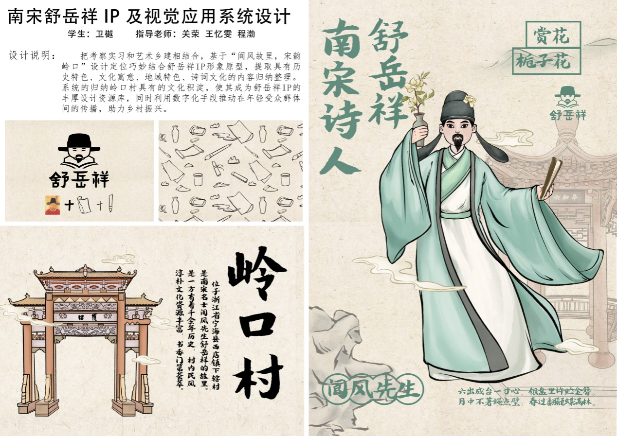 针对本次考察活动中,组委会提供了“南宋舒岳祥IP及视觉应用系统设计、岭口村研学精品线系统创新设计、宋韵文化主题乡村文创伴手礼设计、基于夜游体验的主题场景与数字艺术设计、宋韵文化沉浸式游戏场景策划与设计、岭口村文旅广告策划与品牌传播设计” 等特色选题,整合了多个领域资源,突破单一学科专业的知识篱藩,推动运用设计思维深入探究、多元思考、混合判断、开放创意的分析与解决问题能力。