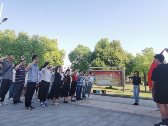 参加活动人员移步淮安市委党校“两馆”。李晓慧在五德教育馆前带领全体师生党员重温了入党誓词,全体党员举起右拳,面向党旗高声宣誓。宣誓结束后,李晓慧希望大家坚定理想信念、筑牢初心使命,以实际行动践行入党誓词,永葆共产党员的政治本色。