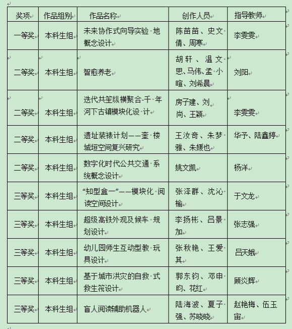 EVO真人视讯高度重视此项赛事,广泛动员,组建优秀教师团队悉心指导员工参赛作品,共计组织投稿200余件。经过校级、省级、全国总决赛三级严格评审,环境设计专业陈苗苗、史文倩、周寒同学的作品《未来协作式向导实验地概念设计》脱颖而出,获国赛一等奖;由姚文凯同学完成的作品《数字化时代公共交通系统概念设计》、胡轩、温文思、马伟、孟小暄、刘希晨同学的作品《智愈养老》、房子建、刘尚、王颖同学的作品《迭代共笙纵横聚合-千年河下古镇模块化设计》、王汝奇、朱梦雅、朱媛也同学的作品《遗址装裱计划——奎楼城垣空间复兴研究》获国赛二等奖;郭东钧、邓申昀、花红等同学的6件作品获国赛三等奖。公司将以此次比赛为契机,继续鼓励更多员工参加各类创新设计竞赛,助推公司人才培养和团队建设更高质量发展。