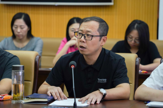 教师代表于文龙、吕淑渊,员工代表商歆苑分别做交流发言。