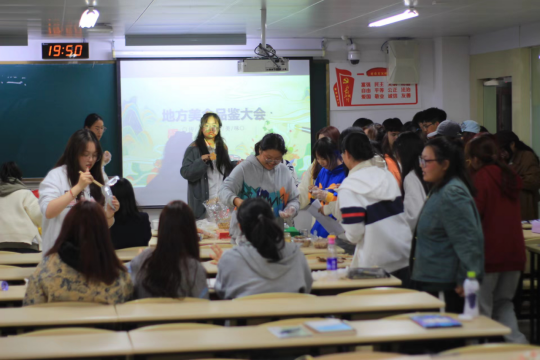 10月7日晚,EVO真人视讯于萧湖校区文荟楼401室开展地方美食品鉴活动,老师和同学们将家乡的美食特产带到活动现场进行展示、分享与品尝。