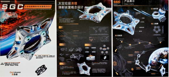 入展作品:太空垃圾清理弹射装置概念设计 设计师:张陈陈,刘月晨.孙铭阳