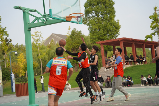 比赛前,萧湖校区露天篮球场边人头攒动,随着一位位员工们熟悉喜爱的教师球员入场,围观人群一片欢声雷动,场边不断响起为双方队伍加油助威的声音。在主持人精彩的开场白后,比赛在雄壮的国歌声中拉开序幕。