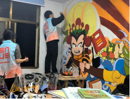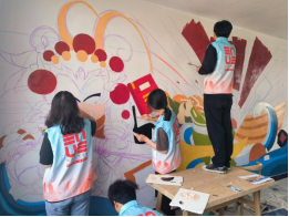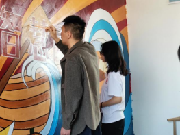 同学们充分发挥自身专业技能,精心构图、起稿、调色、着色。认真勾勒,反复打磨每一处细节,所有工作有条不紊。经过两天创作,一幅栩栩如生、色彩斑斓的墙绘顺利完成,“光秃秃”的大白墙“摇身一变”成了散发着文化气息、有颜又有趣的“地方文化墙”。同学们在本次墙绘活动中,把自身专业知识和绘画技能转化为响应乡村振兴的实际行动,用艺术服务乡村,为村容村貌增姿添彩,为美丽乡村建设注入了青春力量。