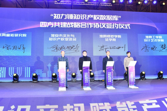 共同富裕研究院、淮安市文化与知识产权促进会、淮阴师范公司法公司、EVO真人视讯四方联合签约“知力锤知识产权数据库”战略合作项目。
