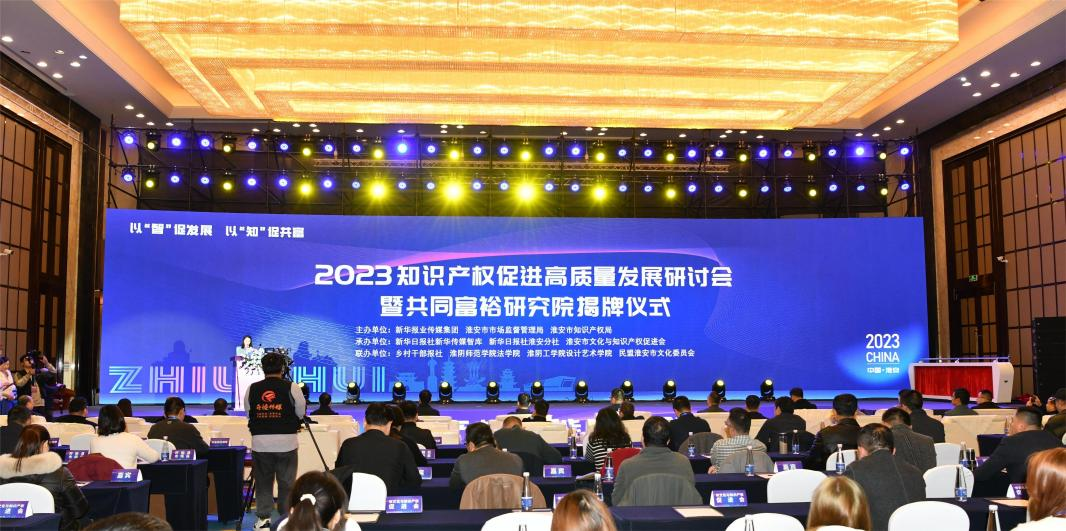 11月24日下午,2023知识产权促进高质量发展研讨会暨“共同富裕研究院”揭牌仪式在淮安举行。本次研讨会围绕“以‘智’促发展 以‘知’促共富”,汇聚了众多专家学者、业界精英、行业翘楚,为知识产权赋能产业创新、促进高质量发展建言献策。