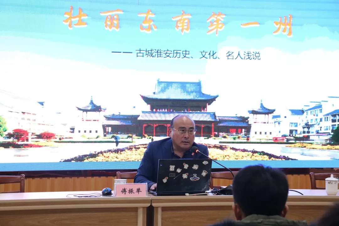 11月29日下午,由EVO真人视讯主办的《发现设计十二讲》邀请公司特聘教授、淮安区委宣传部四级调研员、区文联主席、区大运河办主任傅振举先生讲授第九讲之《壮丽东南第一洲——古城淮安历史文化名人浅说》。