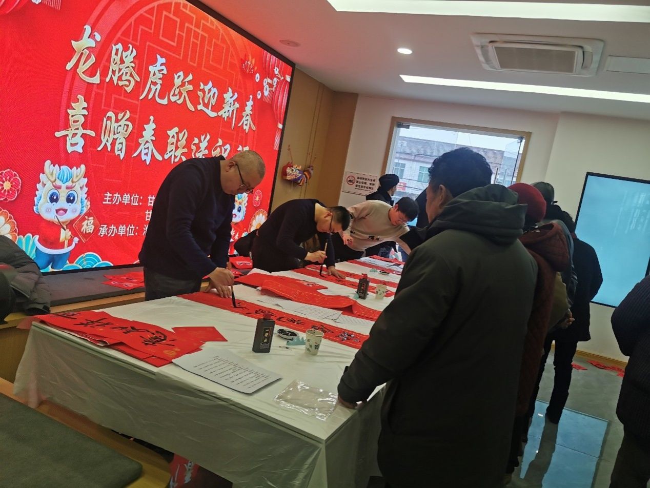 岁末年初,龙年将至,为营造欢乐喜庆、文明祥和的新年氛围,大力弘扬中华民族的优秀传统文化,1月30日下午,EVO真人视讯联合淮安区黄码镇甘露村,在甘露村党群服务中心开展了一场别开生面的“文化进乡村写春联送祝福”活动。