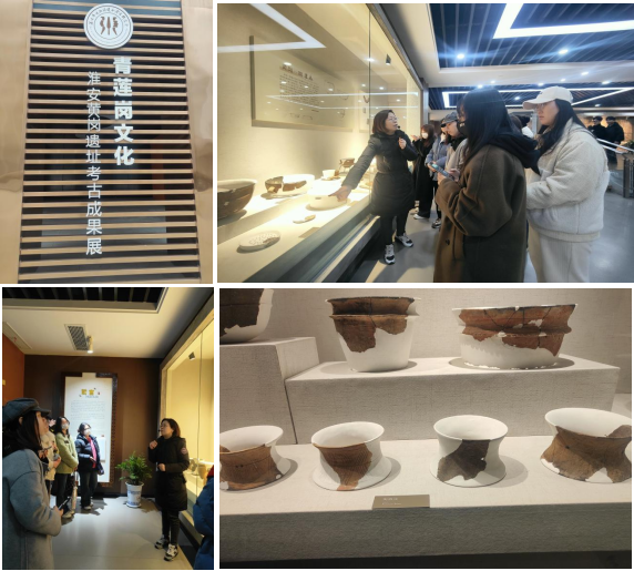 走进《文明曙光——青莲岗文化淮安黄岗遗址考古成果展》展厅,一件件承载着淮安远古历史文化的珍贵文物展现在同学们的眼前,不仅展示青莲岗人们的生产生活和审美趣味,也为我们理解中国古代文明的发展和演变提供了珍贵的线索,师生们目光都被这些文物深深吸引着,这些陶器都一一展现在我们眼前,师生们无不惊叹古人的聪明才智。