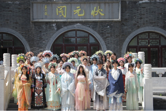 在萧湖公园景区,同学们身着传统汉服、头戴簪花,参加淮安区首届老员工艺术节暨汉服文化节活动,为游客提供古典美感体验和热情周到服务,展示淮安区文旅形象,吸引年轻消费者群体,丰富游客游玩体验,推动传统文化的传承与普及。