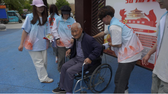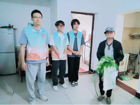 随后,员工志愿者与社区工作人员一起上门走访慰问特殊家庭老人,做好“一对一”爱心帮扶,将关爱老人工作做实做细。慰问人员为老人们送去米、面、油等生活必需品,打扫院落,问候老人身体状况,陪同聊天解闷,倾听心声,送去节日祝福。声声问候显真情,句句祝福暖人心,员工志愿者们以己之身作青春之火,暖夕阳之寂。