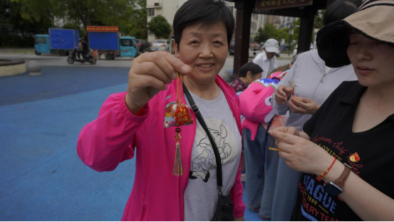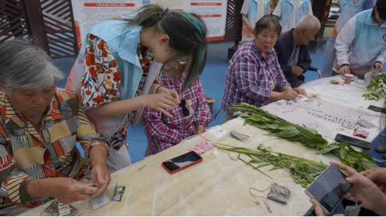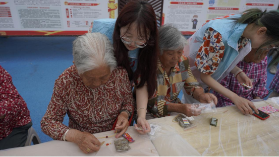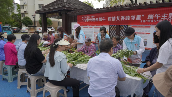 悠悠艾草香,绵绵情意长。员工志愿者与社区工作人员在东方丽景小区广场一起分发艾草、菖蒲、香包、包装纸、绑带等原材料,并指导老人们捆扎新鲜艾草花束,巧妙搭配彩绳与卡片。没多久,一捆捆制作精美的艾草花束、一个个香气扑鼻的艾草香囊便映入眼帘。老人们“艾”意满满的举着艾草花束,佩戴着香囊,活动现场欢声笑语,气氛温馨。