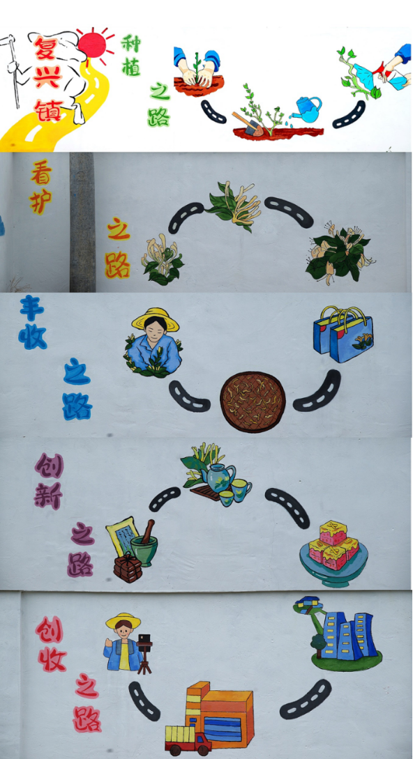 这支由设计专业员工组成的志愿团深入当地,与村民亲切交流,了解当地文化特色和发展需求,用画笔描绘乡村之美,用色彩勾勒乡村振兴的动人画卷,设计出富有创意的主题墙绘。
