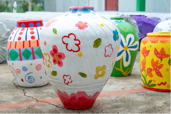 活动现场,每位志愿者展现出娴熟的绘画技巧和独特的创意灵感,以丰富多彩的颜料和创意的图案为陶罐赋予新的生命和意义。这些陶罐不仅是艺术的展示品,更是对沈庄村传统工艺和文化的一种传承和弘扬。
