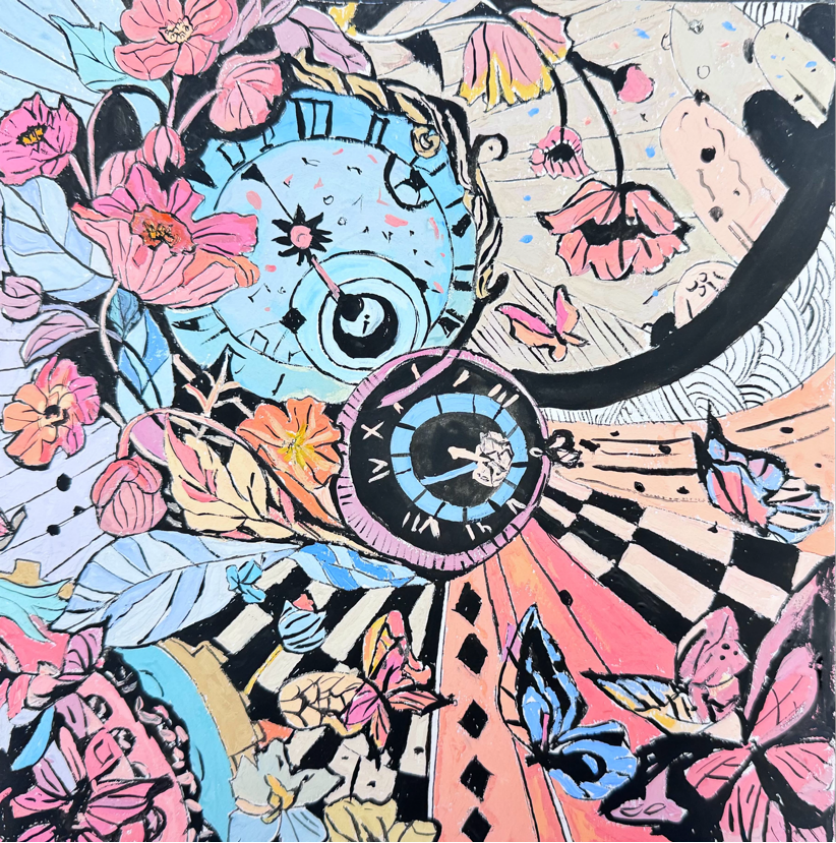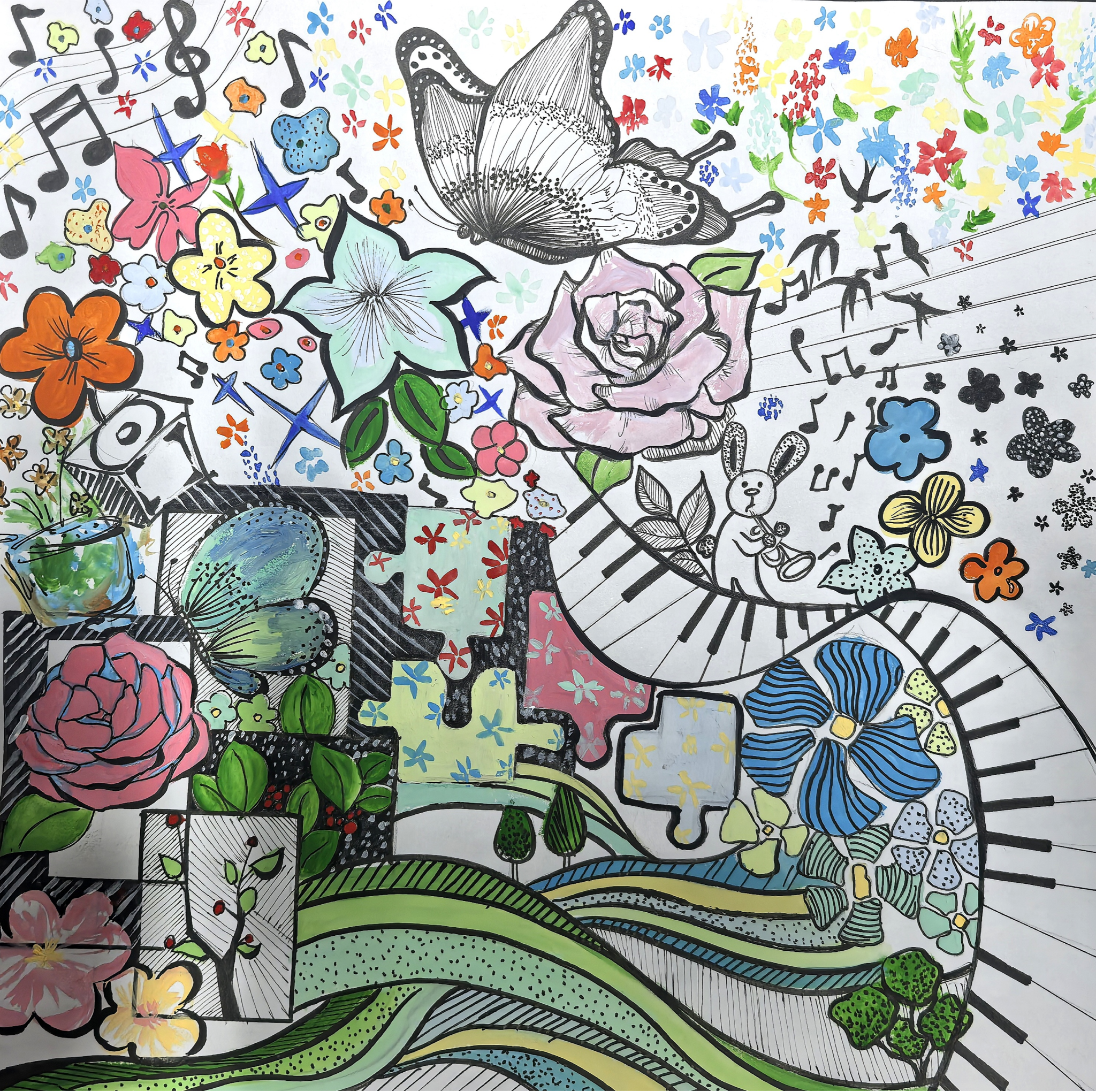 在课程学习中,同学们从设计元素的“点、线、面”开始,灵活运用并组织画面,使其产生视觉美感和韵律感,感受不同的表现形式所展现出的不同的视觉效果,随着学习不断深入,探讨单元形、骨骼、群化、图底共生、渐变、肌理、色彩原理、对比与调和、空间混合、视错觉等,形式美法则的运用和学习,并且构成设计的练习也逐渐转化为自主创作设计,注重个性发挥。在本次“春天的旋律”主题设计作业展中,员工们通过点线面的基础构成演绎出春日的生命律动。点元素的运用尤为精妙,点状元素在空间节奏中的动态平衡,线性语言成为串联视觉的纽带,色彩调和,肌理笔触,尽情展现春天的韵律美。