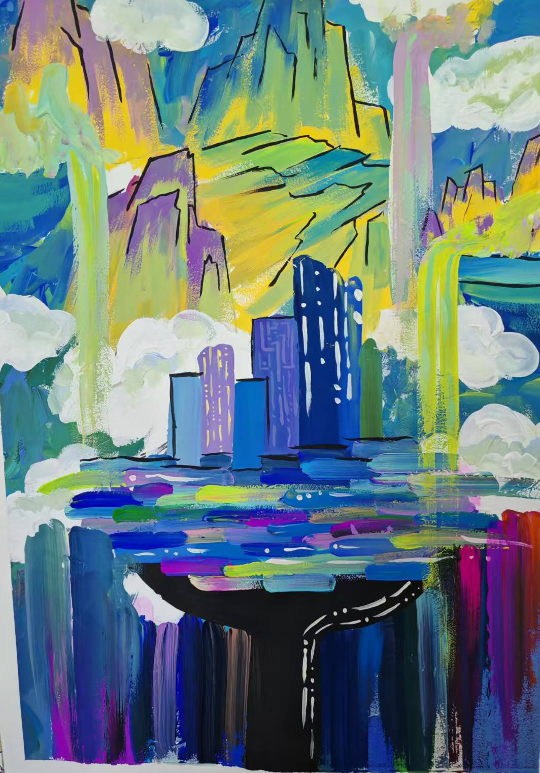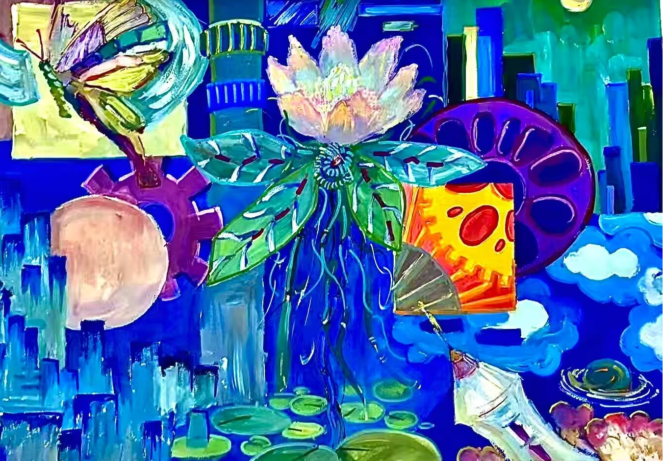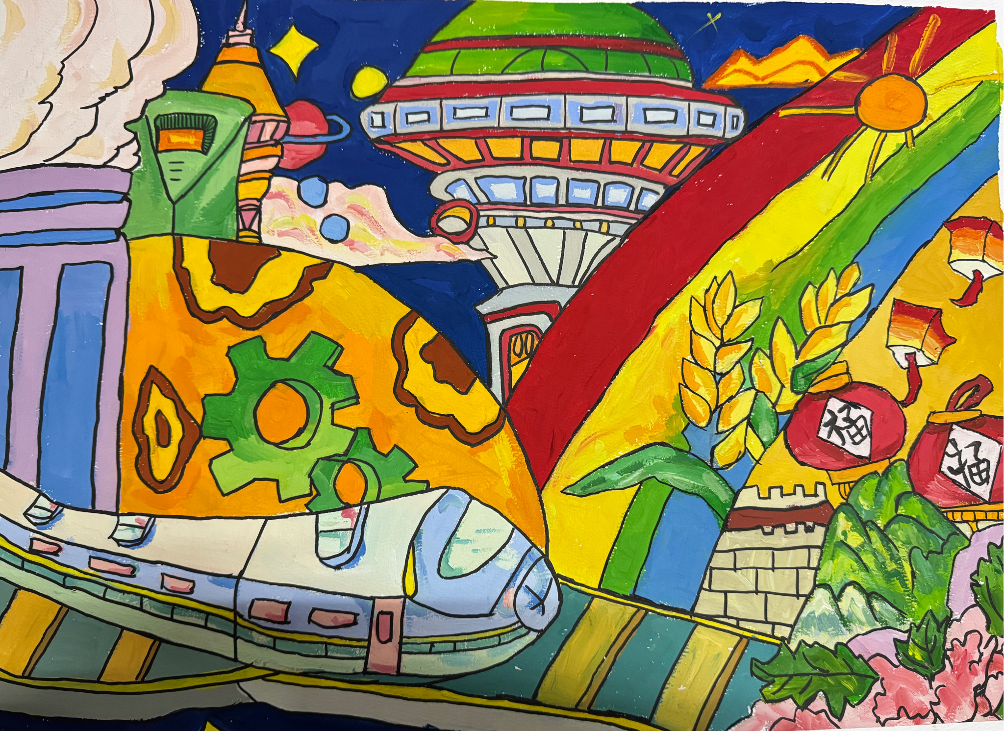 本学期《色彩A》课程围绕“理论支撑实践,个性引导创作”的思路展开教学。通过四大模块——传统色彩与设计色彩、色彩原理、平面归纳训练及意象表达实践,系统构建了员工的色彩认知体系。在教学中,注重以中国传统色彩美学(如民族色彩、自然色彩、动物色彩)与现代色彩经典(如大师色彩)进行对比分析,帮助员工理解色彩应用的历时性与共时性特征。 课程采用“理论-示范-实践-反思”四步教学法,如在色彩平面归纳单元,先讲解蒙德里安构图逻辑,再引导员工用本土文化符号重构画面;其次,引入“色彩情绪”训练,要求员工结合个人生活体验,如家乡胜景、童年记忆等,完成意象表达,涌现出多幅具有情感温度的作品;第三,通过AI介入拓展设计思维,使作业完成度显著提升。