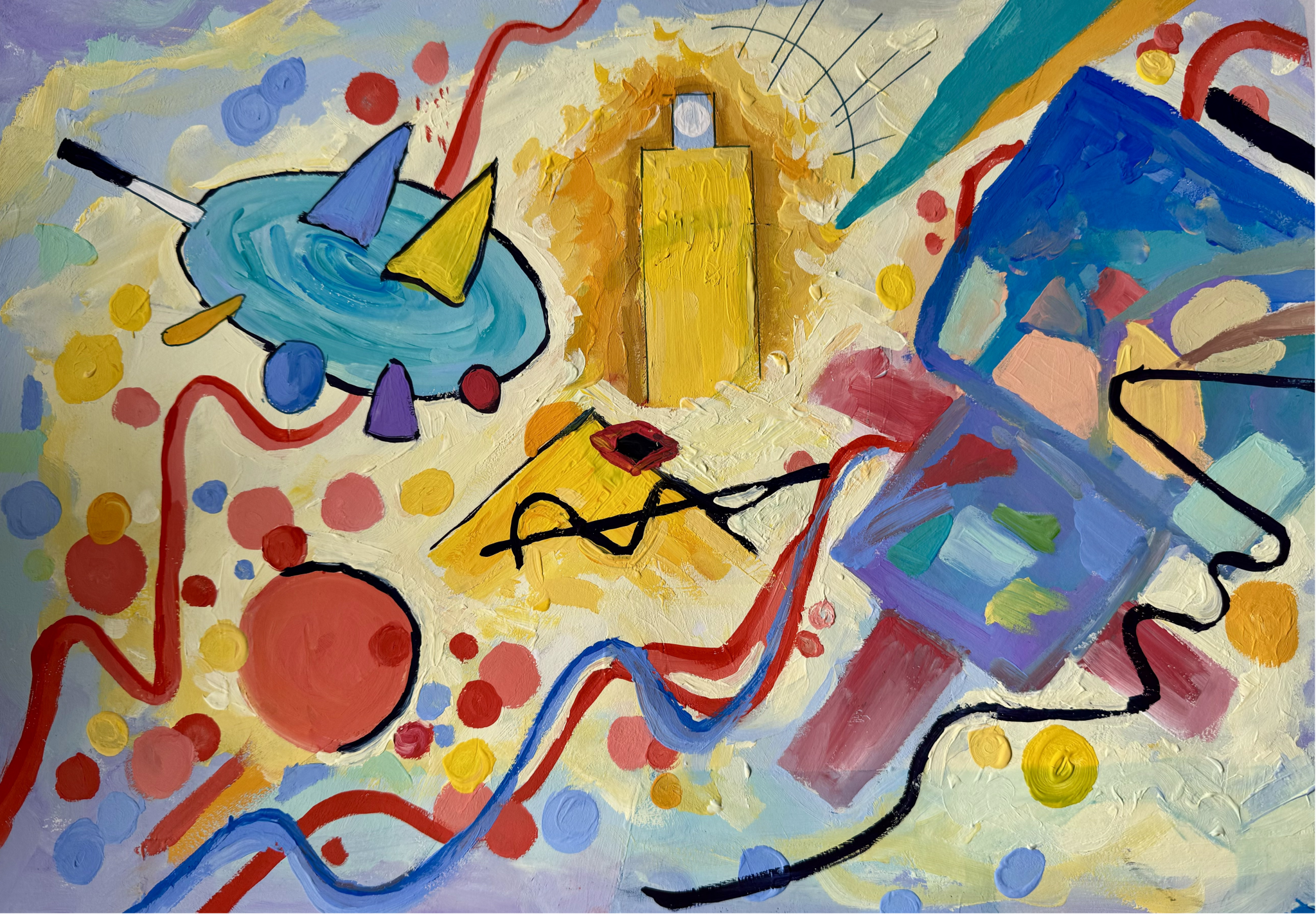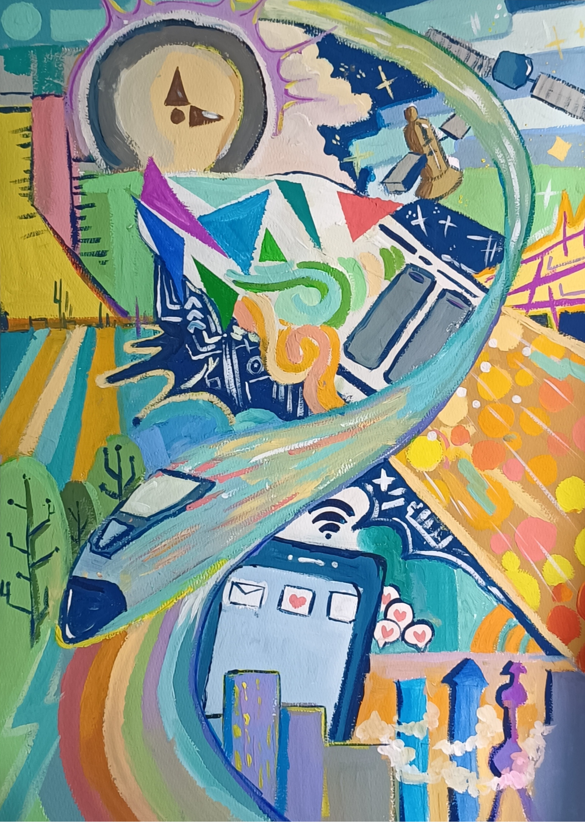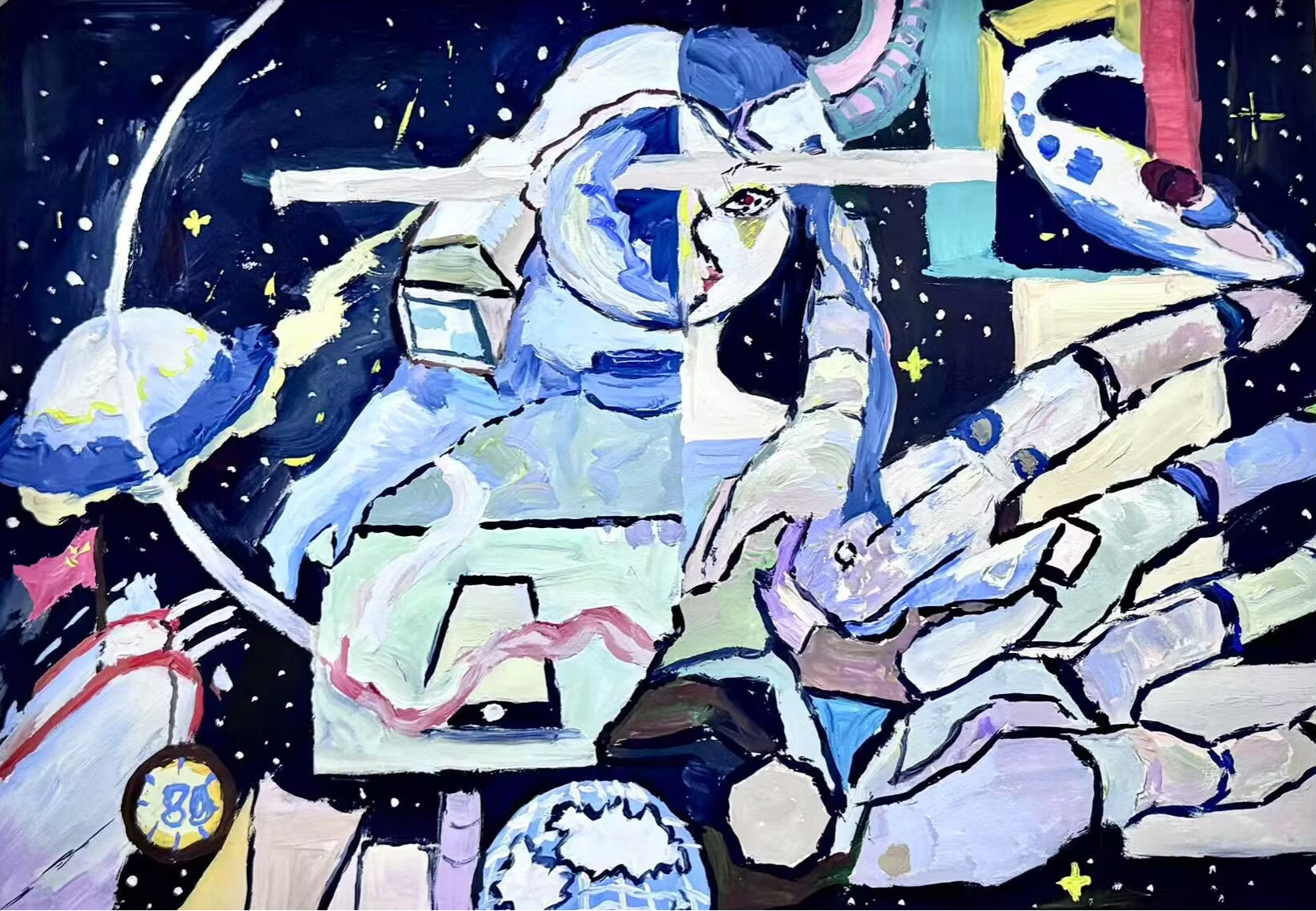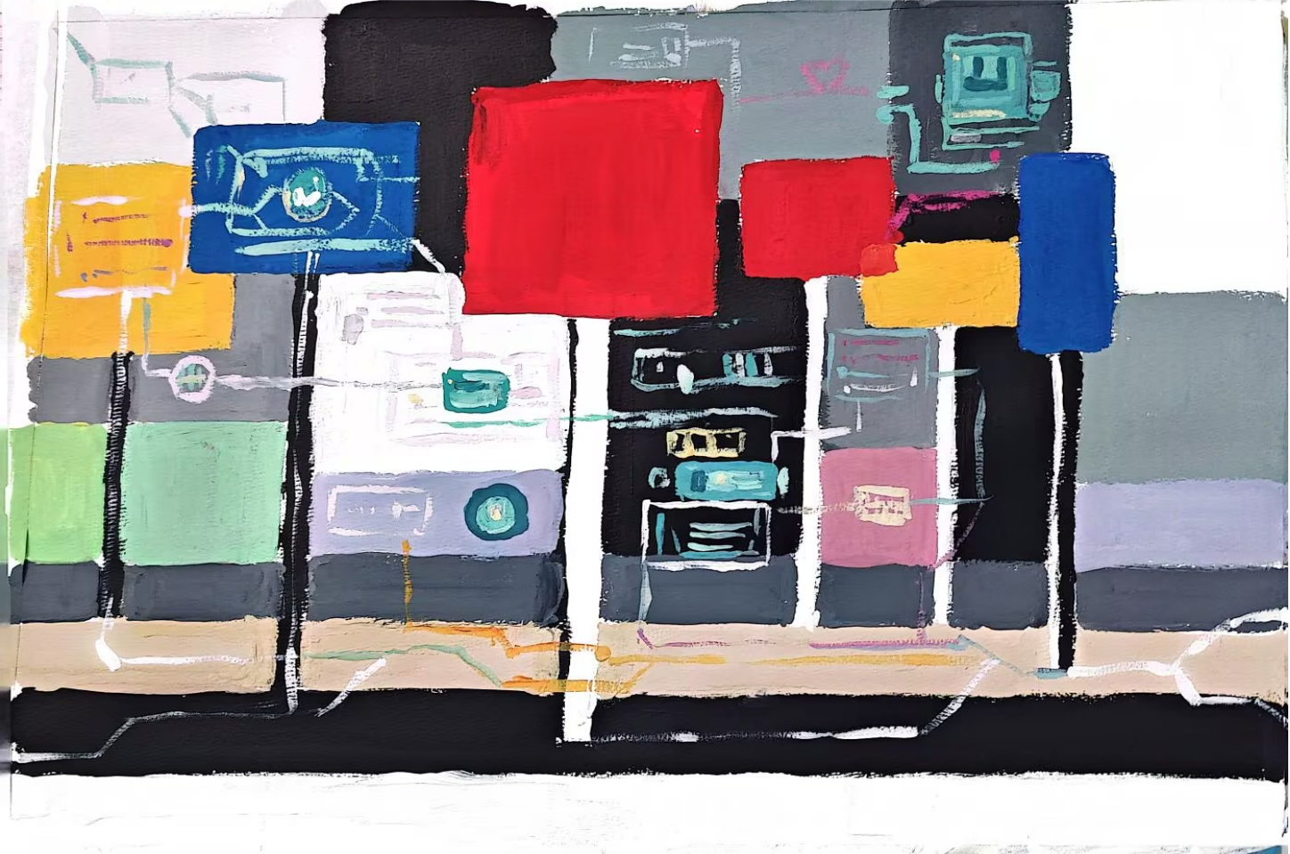 本学期《色彩A》课程围绕“理论支撑实践,个性引导创作”的思路展开教学。通过四大模块——传统色彩与设计色彩、色彩原理、平面归纳训练及意象表达实践,系统构建了员工的色彩认知体系。在教学中,注重以中国传统色彩美学(如民族色彩、自然色彩、动物色彩)与现代色彩经典(如大师色彩)进行对比分析,帮助员工理解色彩应用的历时性与共时性特征。 课程采用“理论-示范-实践-反思”四步教学法,如在色彩平面归纳单元,先讲解蒙德里安构图逻辑,再引导员工用本土文化符号重构画面;其次,引入“色彩情绪”训练,要求员工结合个人生活体验,如家乡胜景、童年记忆等,完成意象表达,涌现出多幅具有情感温度的作品;第三,通过AI介入拓展设计思维,使作业完成度显著提升。