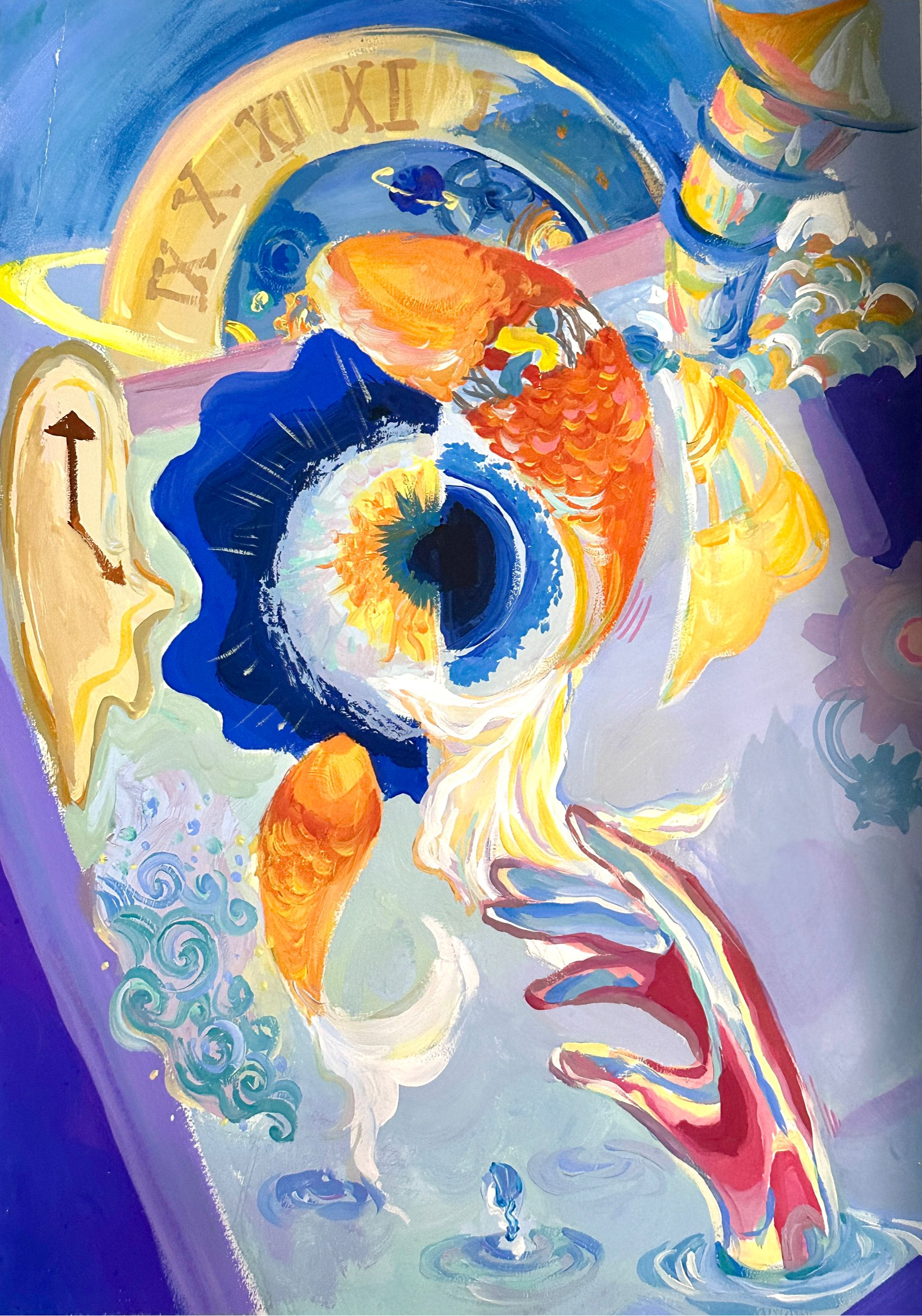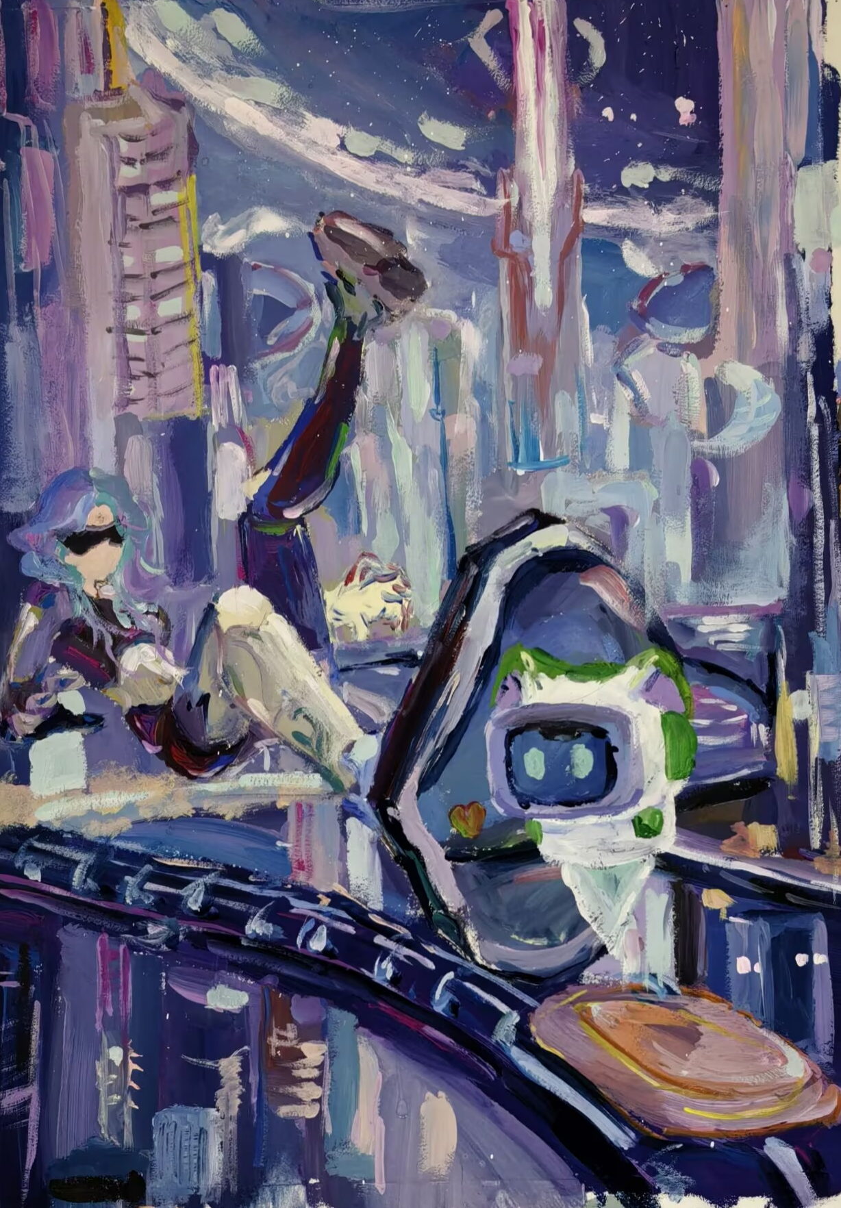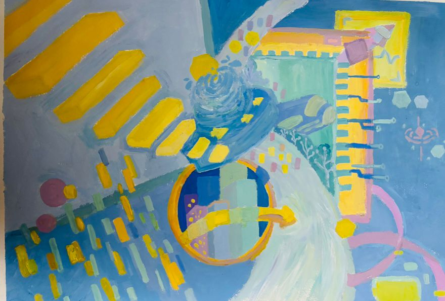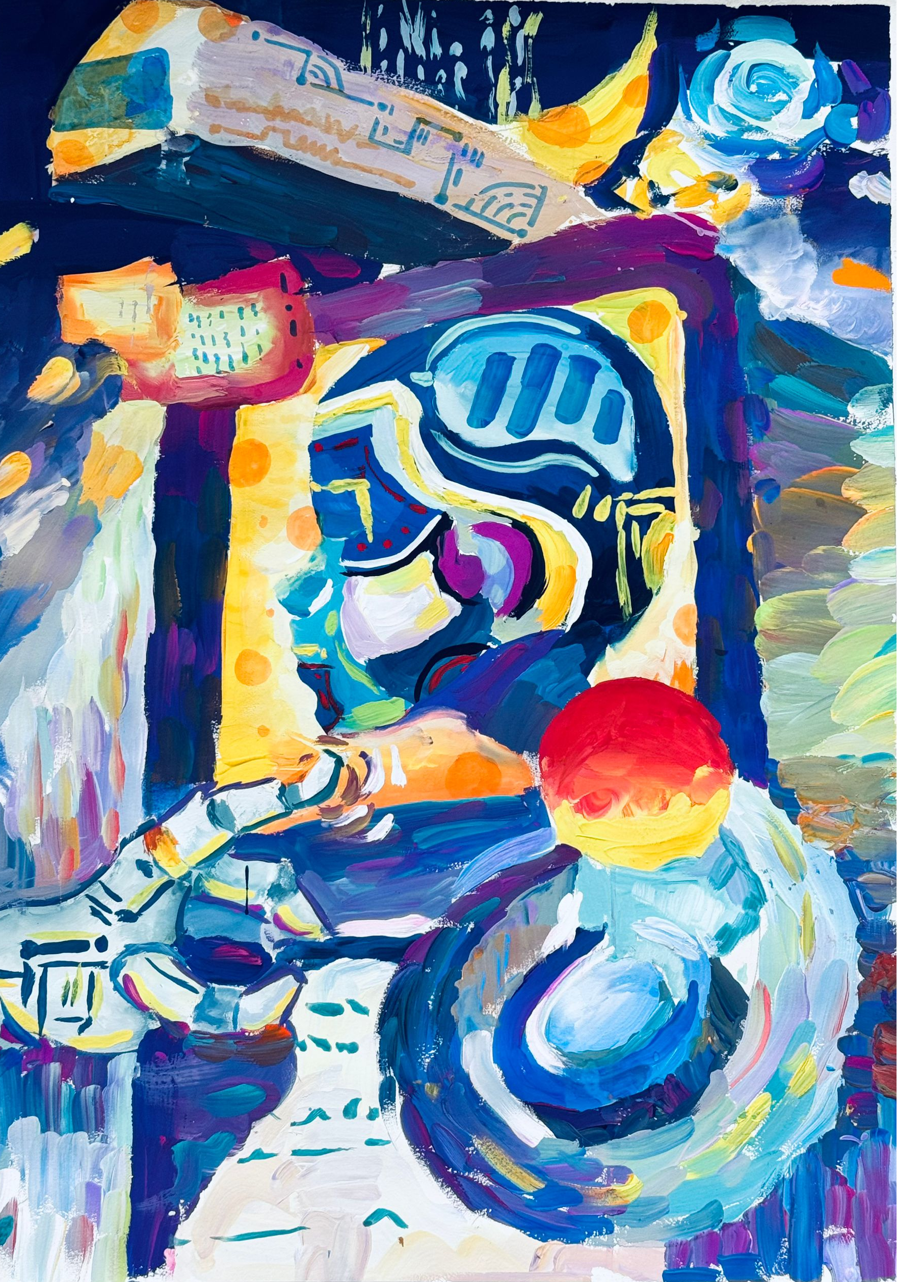 本学期《色彩A》课程围绕“理论支撑实践,个性引导创作”的思路展开教学。通过四大模块——传统色彩与设计色彩、色彩原理、平面归纳训练及意象表达实践,系统构建了员工的色彩认知体系。在教学中,注重以中国传统色彩美学(如民族色彩、自然色彩、动物色彩)与现代色彩经典(如大师色彩)进行对比分析,帮助员工理解色彩应用的历时性与共时性特征。 课程采用“理论-示范-实践-反思”四步教学法,如在色彩平面归纳单元,先讲解蒙德里安构图逻辑,再引导员工用本土文化符号重构画面;其次,引入“色彩情绪”训练,要求员工结合个人生活体验,如家乡胜景、童年记忆等,完成意象表达,涌现出多幅具有情感温度的作品;第三,通过AI介入拓展设计思维,使作业完成度显著提升。