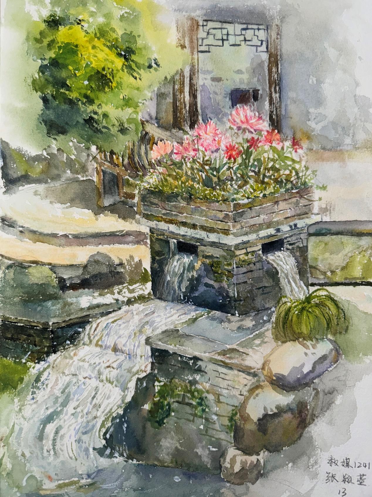 姓名:胡梦竹 作品名:《朱阑枕水》 指导老师:张维柱
