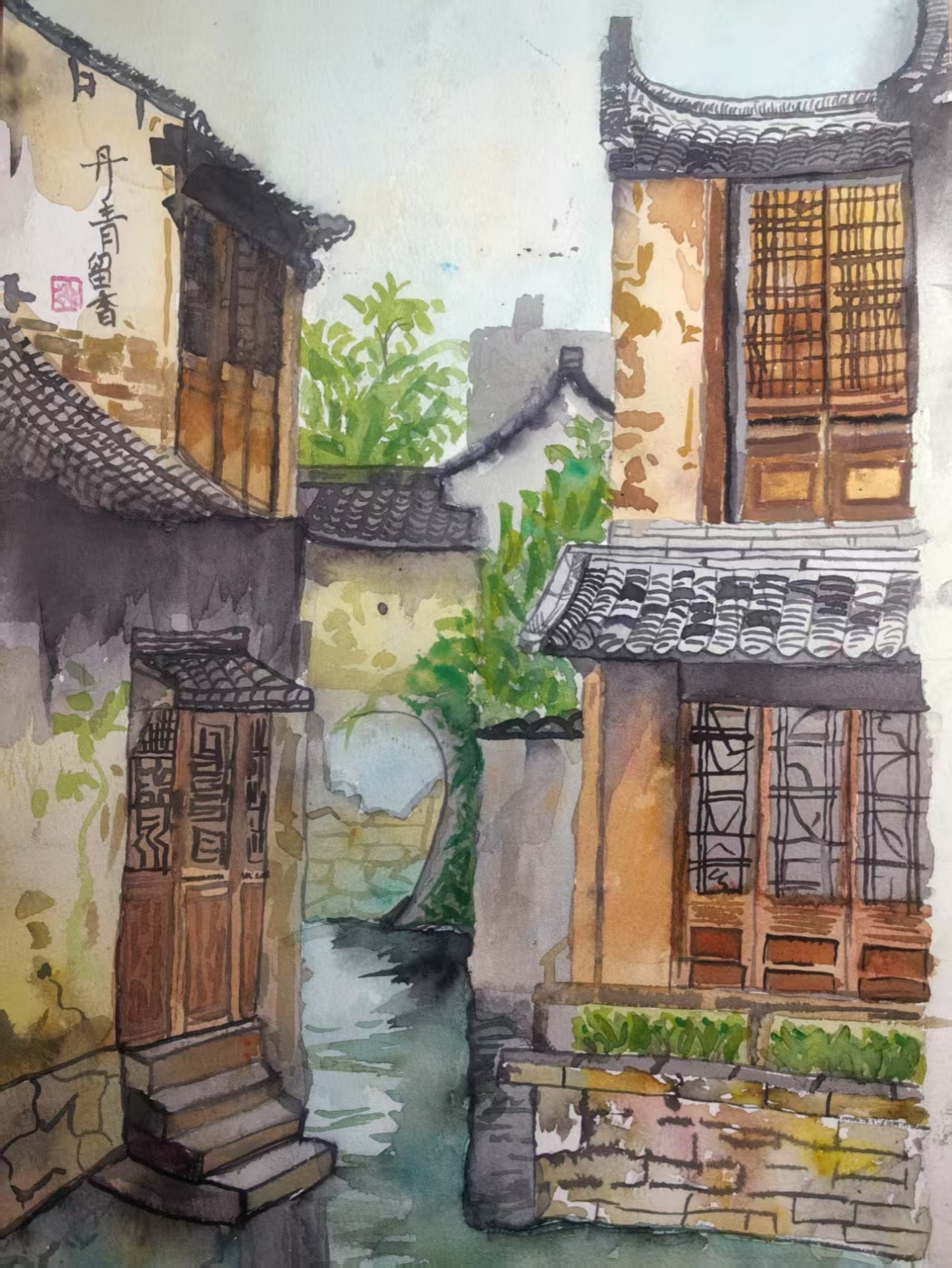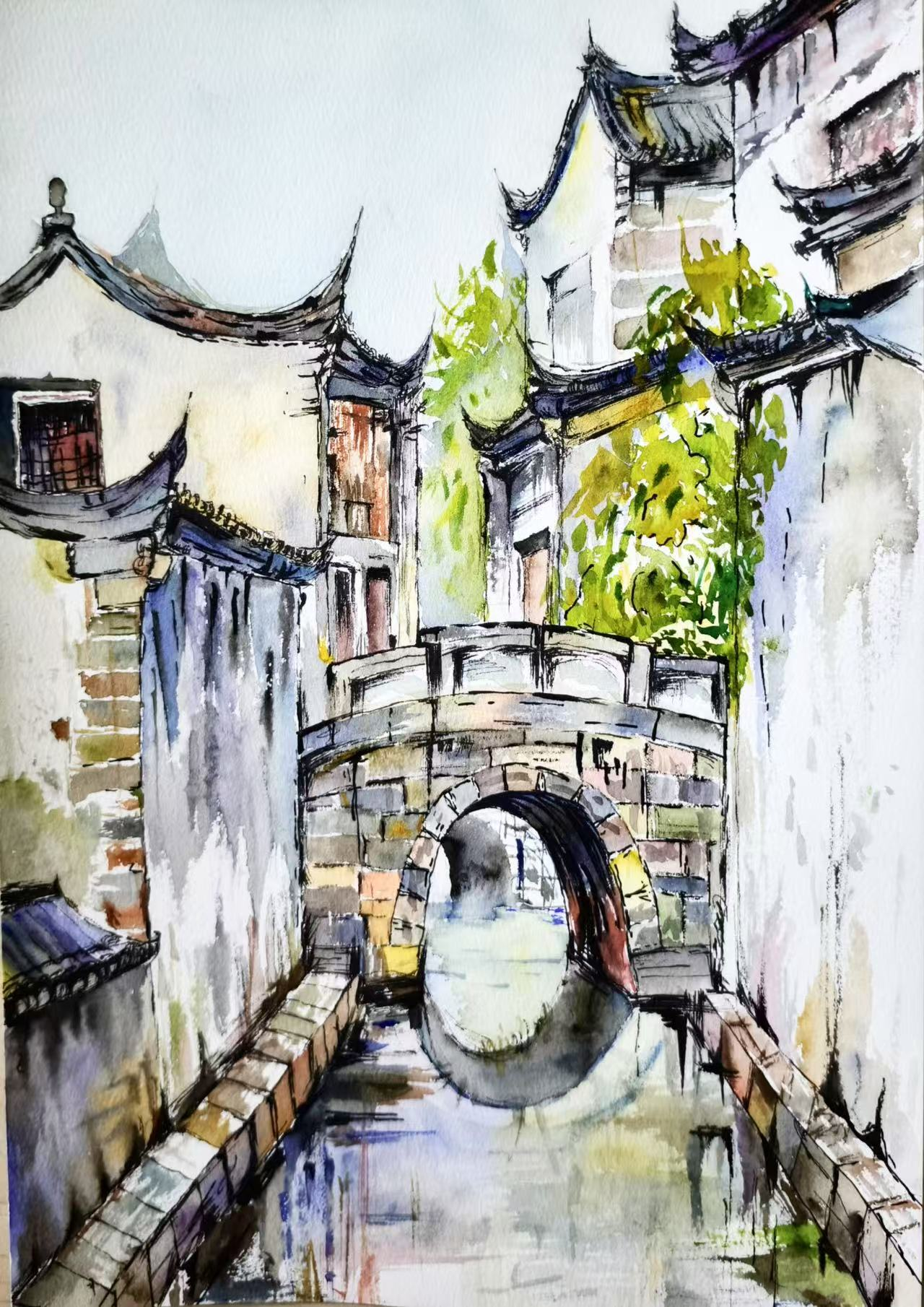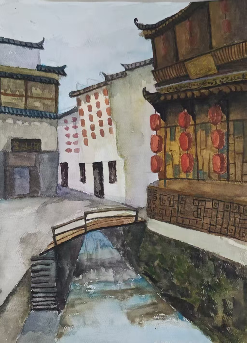 姓名:陈金杭 作品名:《古巷桥影》 指导老师:张维柱
