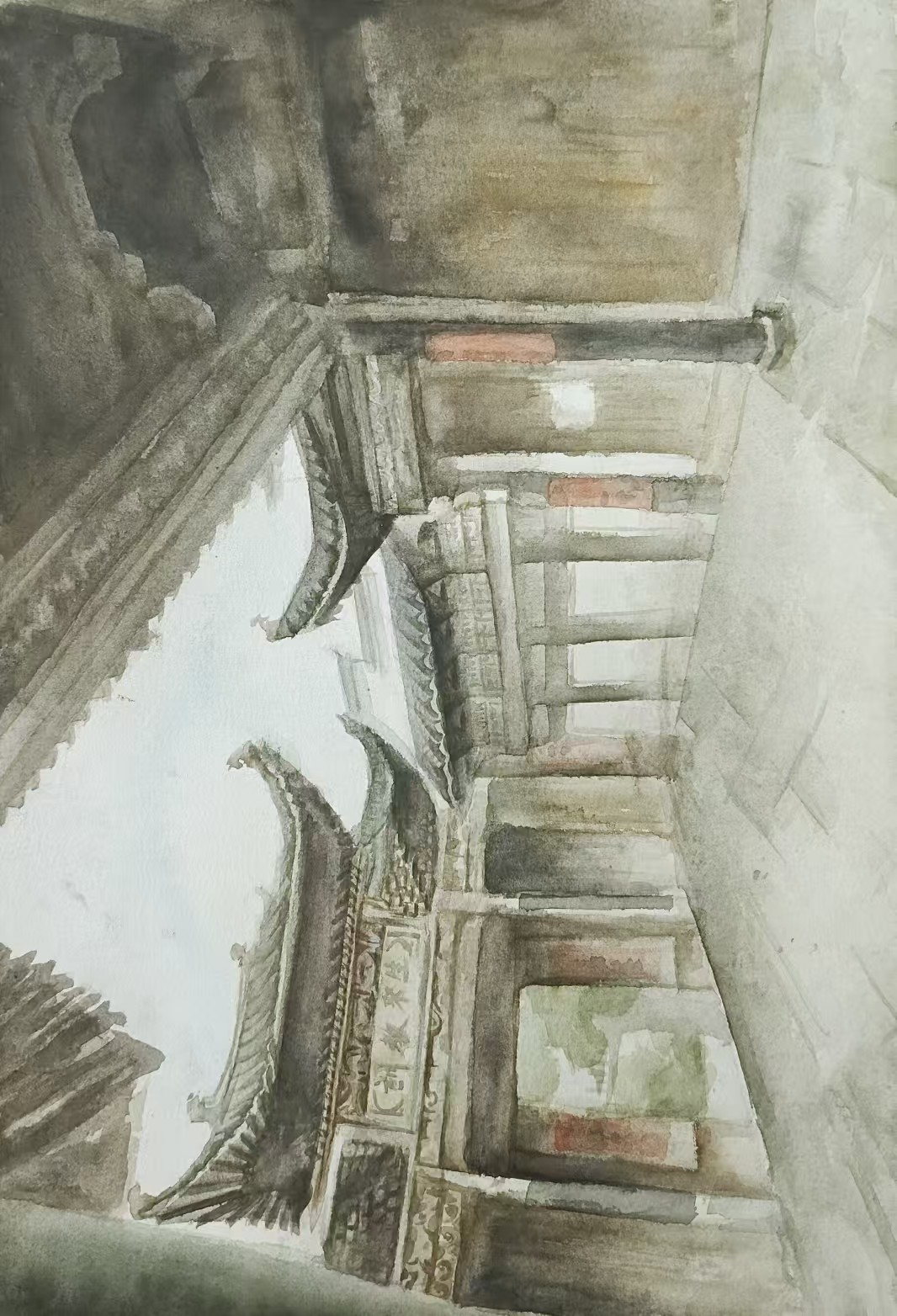 姓名:吴晓遥 作品名:《墨韵古祠》 指导老师:张维柱