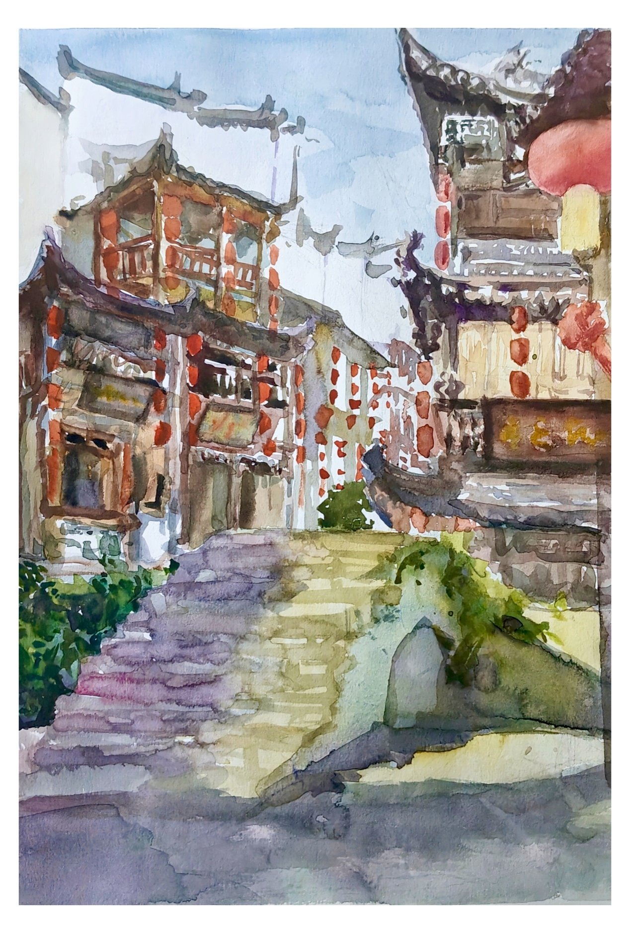 前言:婺源,如一幅被时光浸润的水墨长卷,静卧于赣东北的青山绿水间。这里是“中国最美乡村”的代名词,白墙黛瓦的徽派古村点缀在梯田花海、潺潺溪流与葱郁山林之间,晨雾炊烟交织成诗,四季流转皆成画境。此次写生之旅,我们将走进这片充满人文底蕴与自然灵秀的土地。以心为眼,以笔为媒,让徽派建筑的典雅、田园风光的柔美、乡土生活的烟火气,在水彩的氤氲晕染中焕发新生。