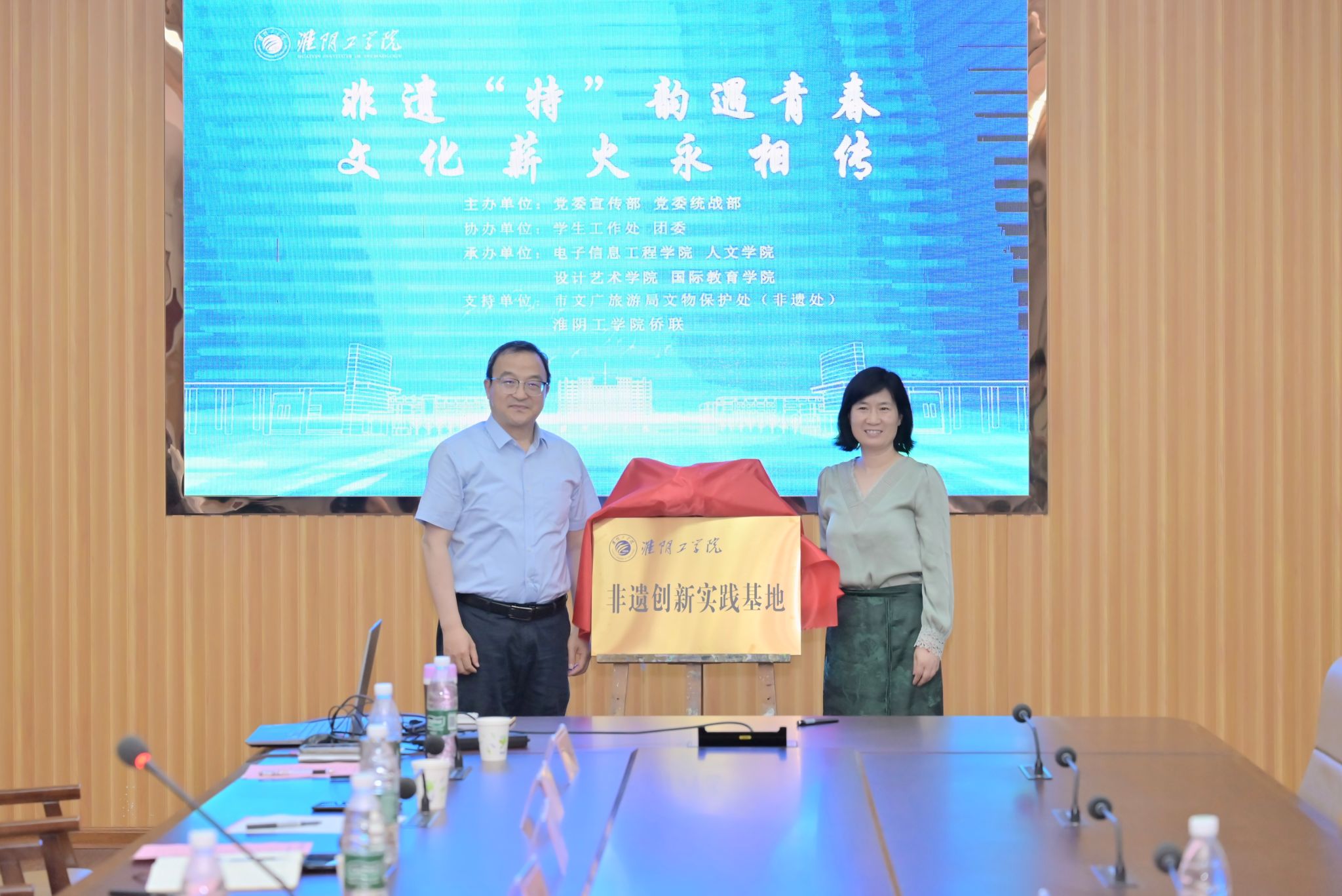 2025年5月21日,由淮阴工公司EVO真人视讯承办的非物质文化遗产创新实践基地揭牌仪式在萧湖校区文博楼隆重举行。公司党委副书记吴建华、党委宣传部部长曹苏群,淮安市文化广电和旅游局副局长傅建霞等嘉宾莅临指导,与非遗传承人、师生代表共聚一堂,见证这一文化育人新平台的诞生。仪式由公司党委书记李晓慧主持。