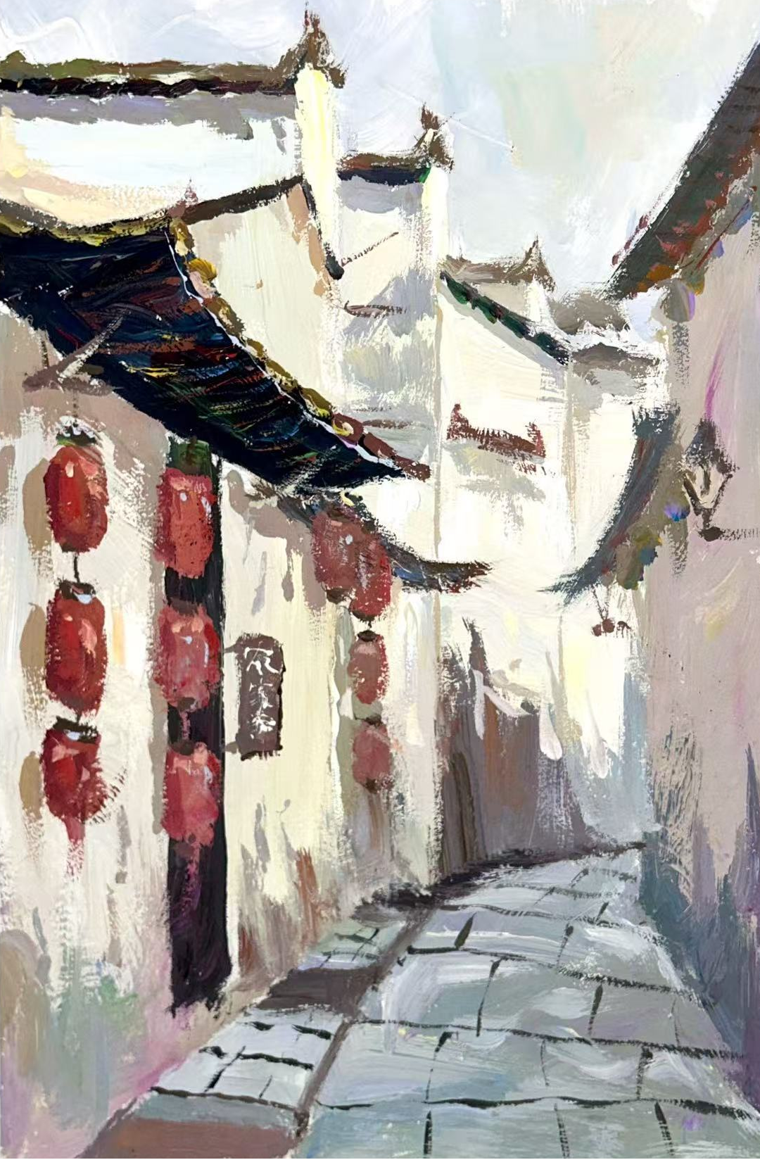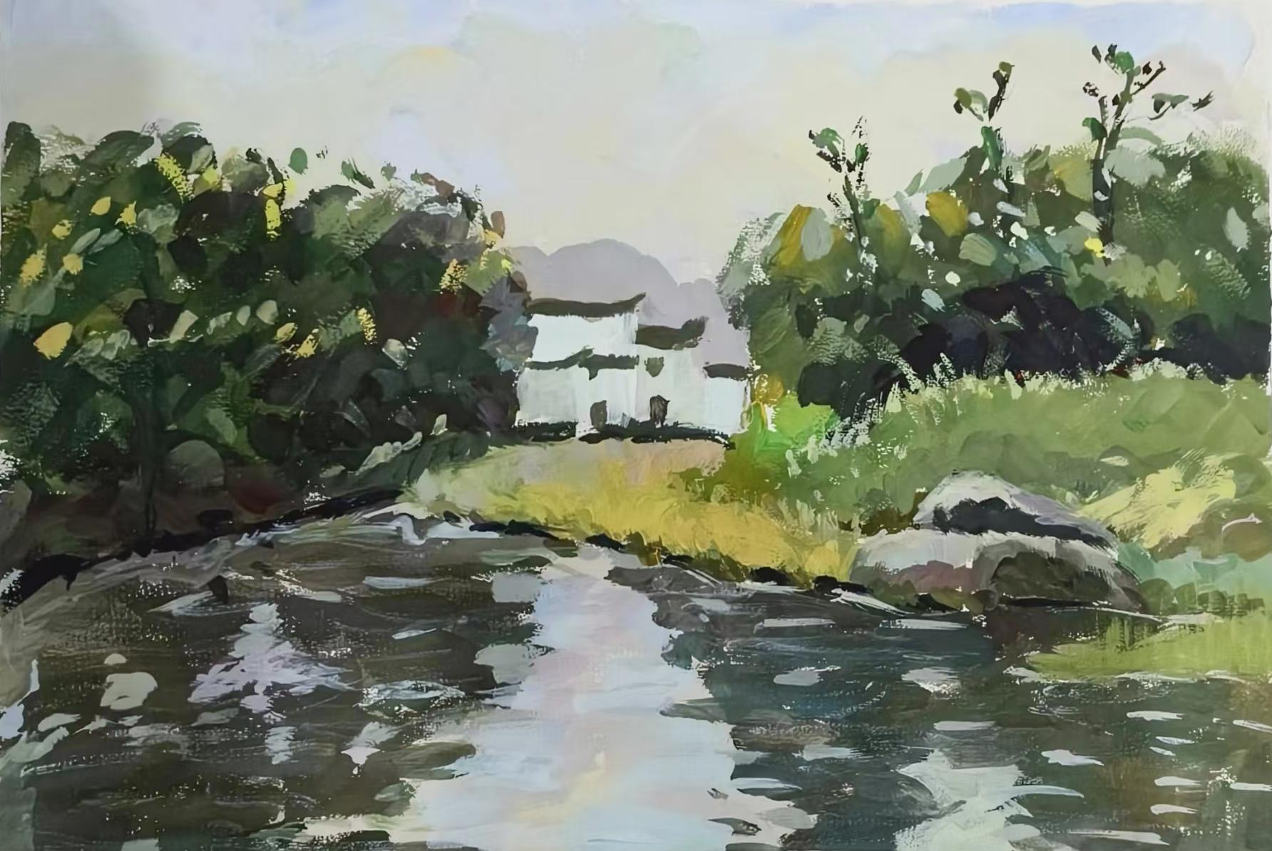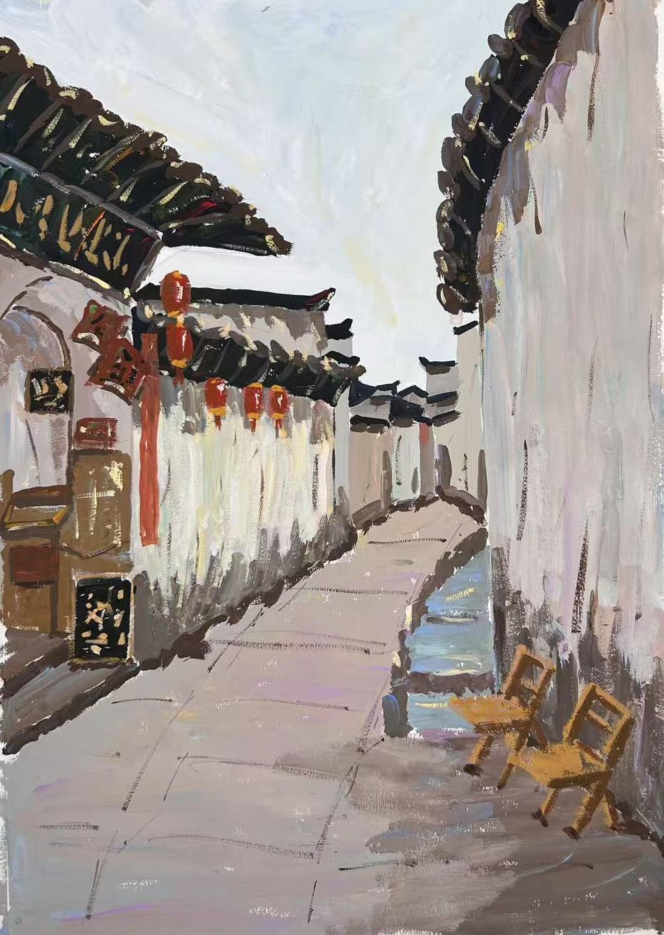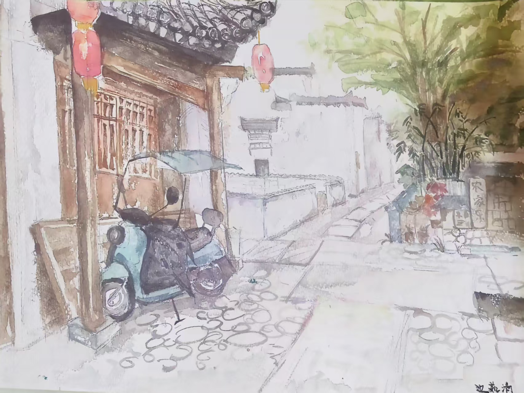 宏村位于安徽南部黟县,2000年被联合国教科文组织列入世界文化遗产名录。白墙黑瓦的宏村建筑是徽派建筑的代表,与周围青山绿水的自然环境相得益彰。宏村有“中国画里乡村”的美誉,吸引了世界各地的游客前往。其周围的西递、屏山、秀里等景区和宏村构成了皖南文化群落,融人文自然景观于一体,成为全国艺术、设计专业考察、学习的重要目的地。此次写生,2023级产品设计专业的59名同学,在耳濡目染中体会了中国传统文化的博大精深,努力通过自己的画笔表现祖国的大好河山。