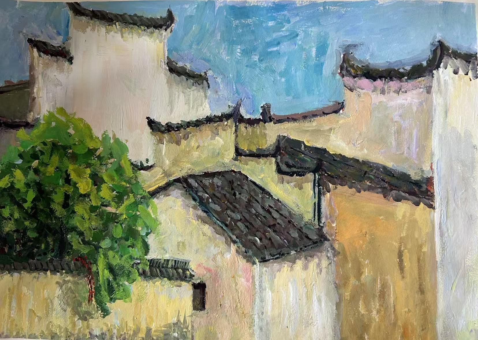 本次安徽宏村写生课程,培养了员工科学观察的能力,提高了对造型、色彩和空间的表达能力。员工基本掌握了户外写生的方法和要点,在“观—思—绘”中提升了审美素养,积累了设计素材、锻炼了设计思维。通过外出考察,员工更加深入地了解了中国传统文化,感受到了自然之美和人工造物之美,也在集体行动中增强了员工的团队意识和协作能力,培养了责任感和使命感。由于课程时间较短,不少员工对选景和构图、画面层次和空间的处理、色调的整体把握还有较大的提升空间。“读万卷书,行万里路。”相信在本课程结束之后,同学们一定能够在造型表现和文化素养方面取得更大的提升。