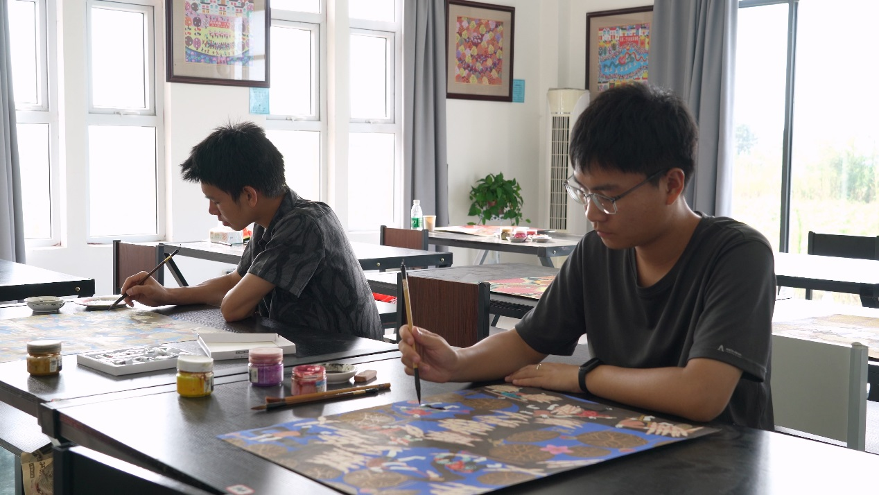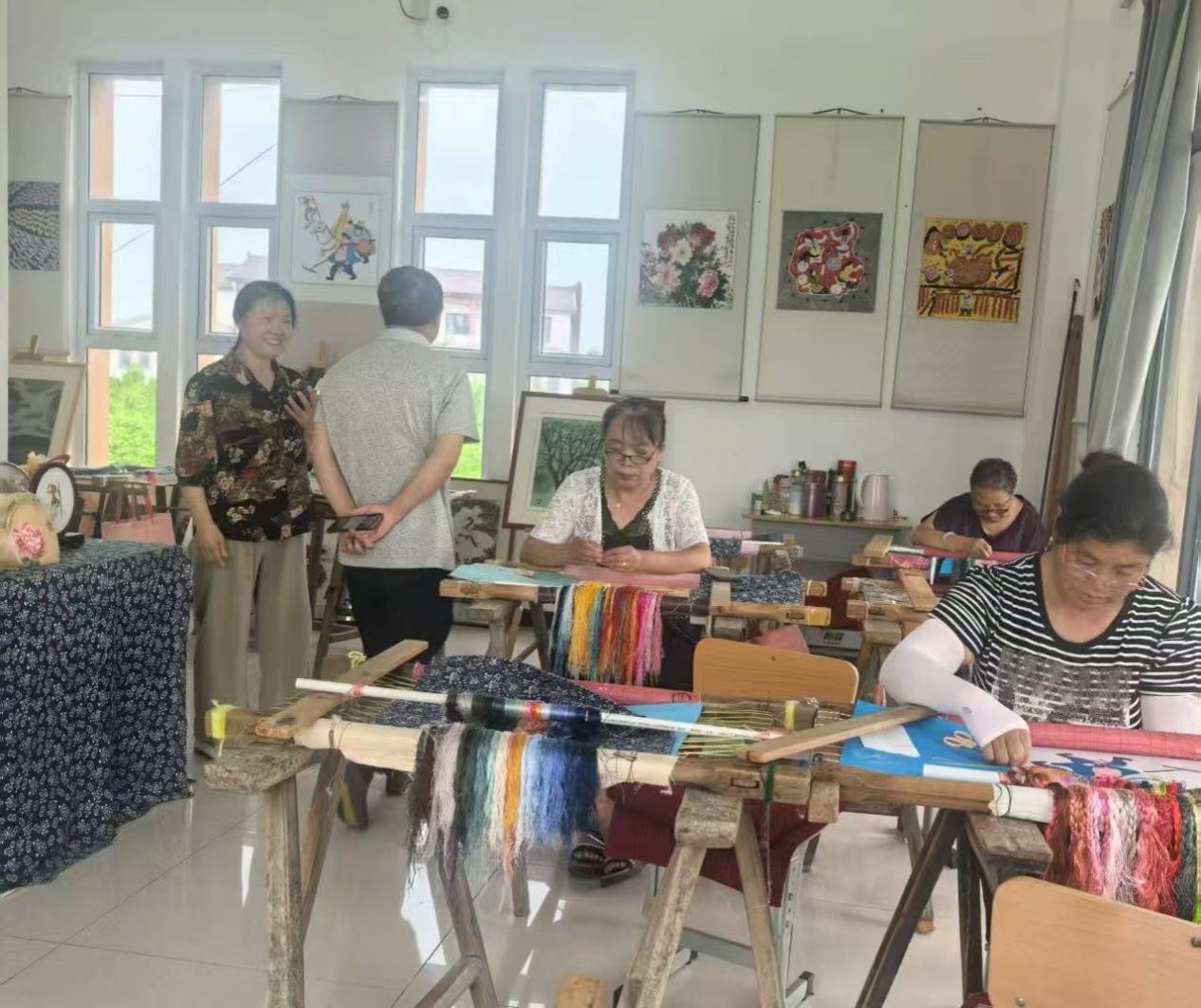 在博里,我们看到的不仅是技艺,更是一种“乡村振兴”的设计路径。“公司+农户”模式让绣娘实现在地就业,而公司员工也通过项目制课程参与产品研发——从刺绣丝巾到数字文创,从国际研习营到跨境文化课,员工既是学习者,也是非遗创新的参与者。这种“把中国乡村故事讲给世界听”的实践,真正让文化自信从课堂认知转化为行动能力。EVO真人视讯教师吕艳带领员工们将博里农民画的美学特征融入现代设计,开发兼具文化内涵与市场价值的创新作品。她依托博里农民画非遗传承所申报的《匠心传承·非遗赋能——“非遗服务+”劳动教育实践项目设计与实施》项目获江苏省第二届高等公司劳动教育优秀实践项目一等奖。