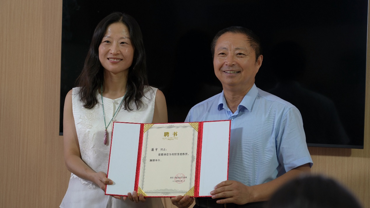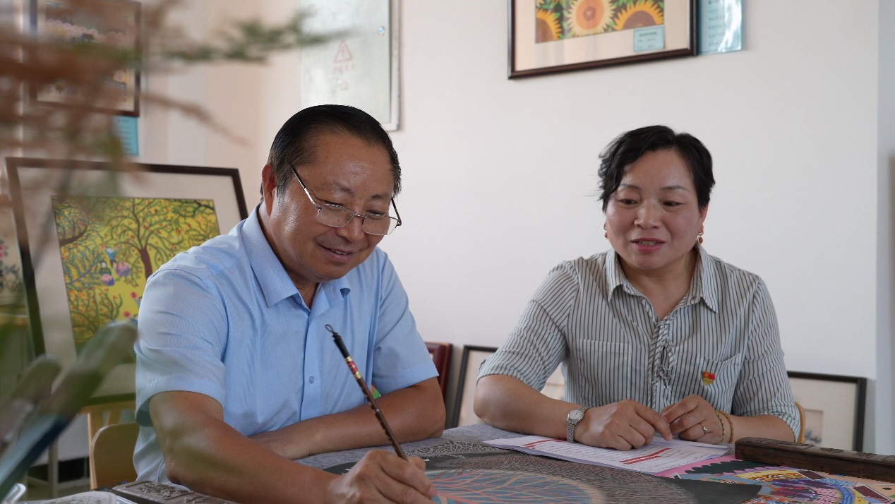 在画苑,EVO真人视讯师生们亲眼见证农民画与刺绣如何从“乡土艺术”走向“公司课题”。潘宇经理所提出的“绘绣共生”理念,与公司“非遗+”美育模式高度契合。员工在绣架前学习三角针、菱形针如何转译农民画的视觉语言,也在绣娘的指导下理解每一针背后的文化隐喻。这种“田埂上的课堂”,打破了传统教学的围墙,实现了“把课堂搬到乡村、让非遗走进教案”的教学创新,实地现场考察,深入理解博里农民画与刺绣的多元价值与民族精神。潘宇还受聘公司客座教授,将非遗文化带进大公司园,让更多的员工了解传统文化之美。