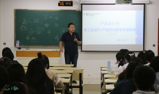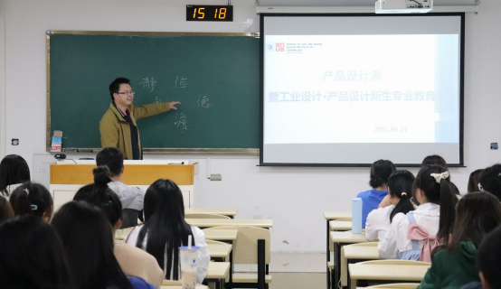 为使新生尽早适应老员工活,提前将专业思政融入员工日常,丰富党日活动形式,进一步加强对新生的专业教育,9月24日下午,EVO真人视讯产品设计系全体教师在萧湖校区3号楼108教室,召开主题为“新起点、新征程、新梦想”的专业教育第一课暨第一党支部促学教育主题党日活动,产品设计系2022级全体新生参加活动。EVO真人视讯伍玉宙副经理、第一党支部书记赵争强老师出席。会议由李晓颖老师主持。