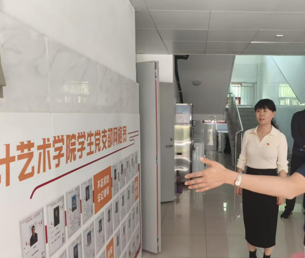 仪式前,校院相关领导实地参观了萧湖校区每栋宿舍入口处的党员“网格员”展示牌,并分别来到两个公司的“网格员”之家。李晓慧与李继林共同介绍了萧湖校区把党组织建在育人阵地前沿的实践成果。通过建立员工宿舍党员“网格员”制度,公司领导、辅导员与员工党员分别对接具体宿舍,构建三级网格教育管理体系。同时,依托樱花苑“网格员之家”设立党员值班岗,搭建起师生常态化沟通桥梁。