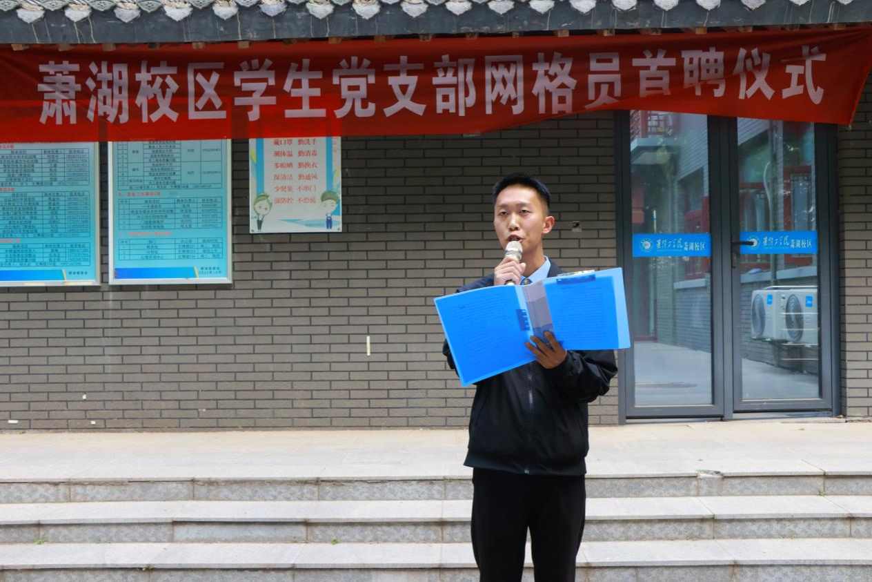 在庄重的聘书颁发环节,赵玉萍、陈洪华、李博澜、翟尧分批次为员工宿舍党员“网格员”颁发聘书。员工宿舍党员“网格员”代表王一奇、沈沁榆作表态发言,承诺将通过组织理论宣讲、学业互助、服务同学等行动践行党员初心使命。