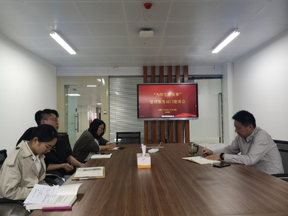 2021年5月13日上午,EVO真人视讯在文萃楼四楼会议室召开了“我为师生办实事”实践活动的管理服务部门座谈会。全院管理部门人员以及相关领导参加了此次座谈会。