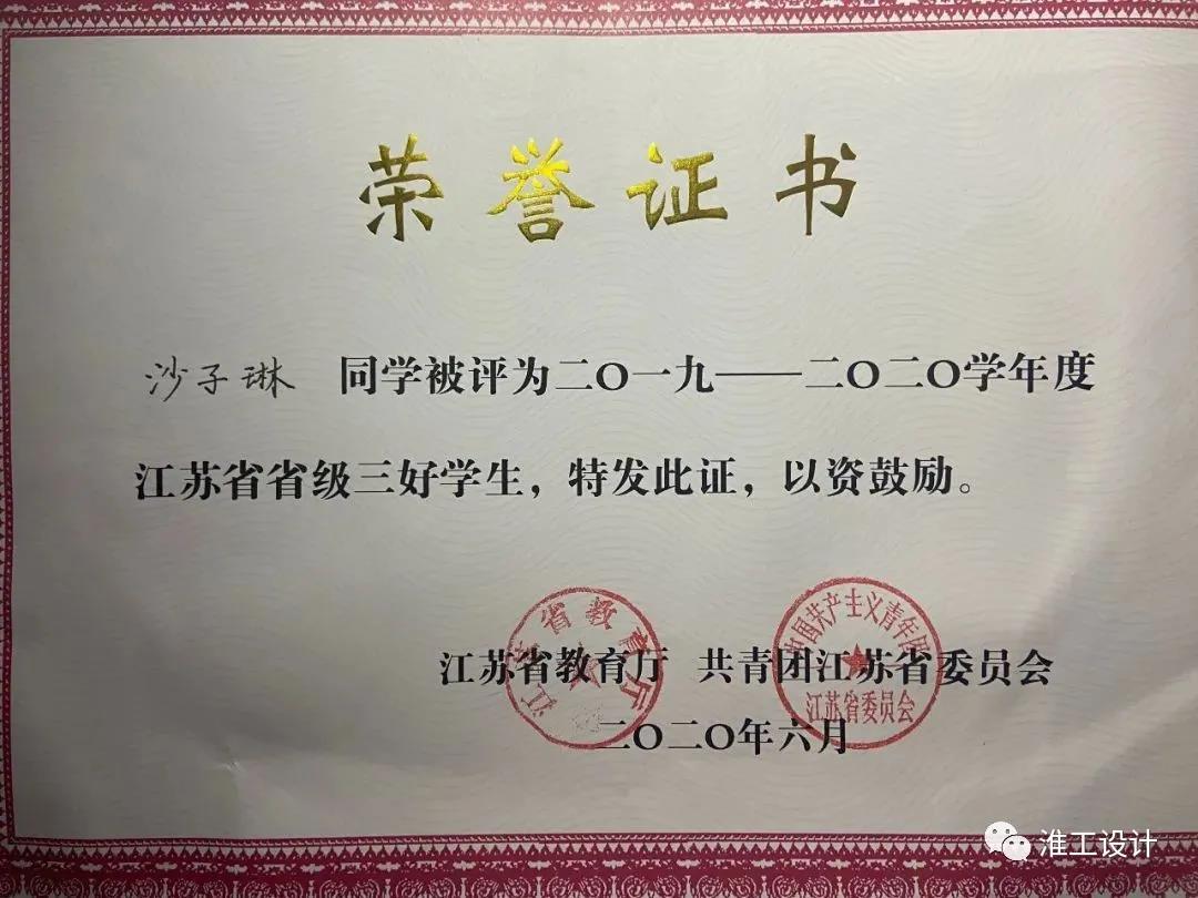 在实践中提高才干,在竞赛中增长知识。沙子琳认为大学是一个开放的平台,实践活动无疑是跃然纸上的一抹色彩,她在各种实践活动中增添着属于自己的色彩。在大一暑假时,她参与了公司暑期社会实践活动,并且作为校员工会的一员进行汇报取得一等奖,同时也获得了江苏省“三下乡”社会实践活动“优秀个人”奖。所有的荣誉背后,也都隐藏着看不到的艰辛。