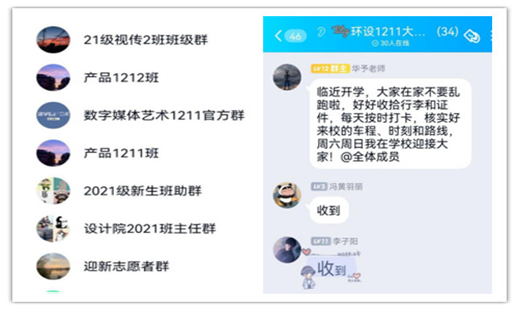 “欢迎新同学,……报到当天公司在汽车站、火车站有专车接送,志愿者会带你们完成入学报到”“同学你好,我是班级的班主任助理,有什么需要可以跟我随时联系……”“苏康码、行程码、返校码……请提前准备好,我在报到现场等候大家”,一声声关怀在各个班级群内响彻。为使新生提前感受淮工大家庭的温暖,提前做好开学准备。每个班级提前建立QQ、微信群,班主任和班助们仔细向新生了解有关情况,耐心解答员工提出的各种疑问,并提醒新生在校报到时的注意事项。