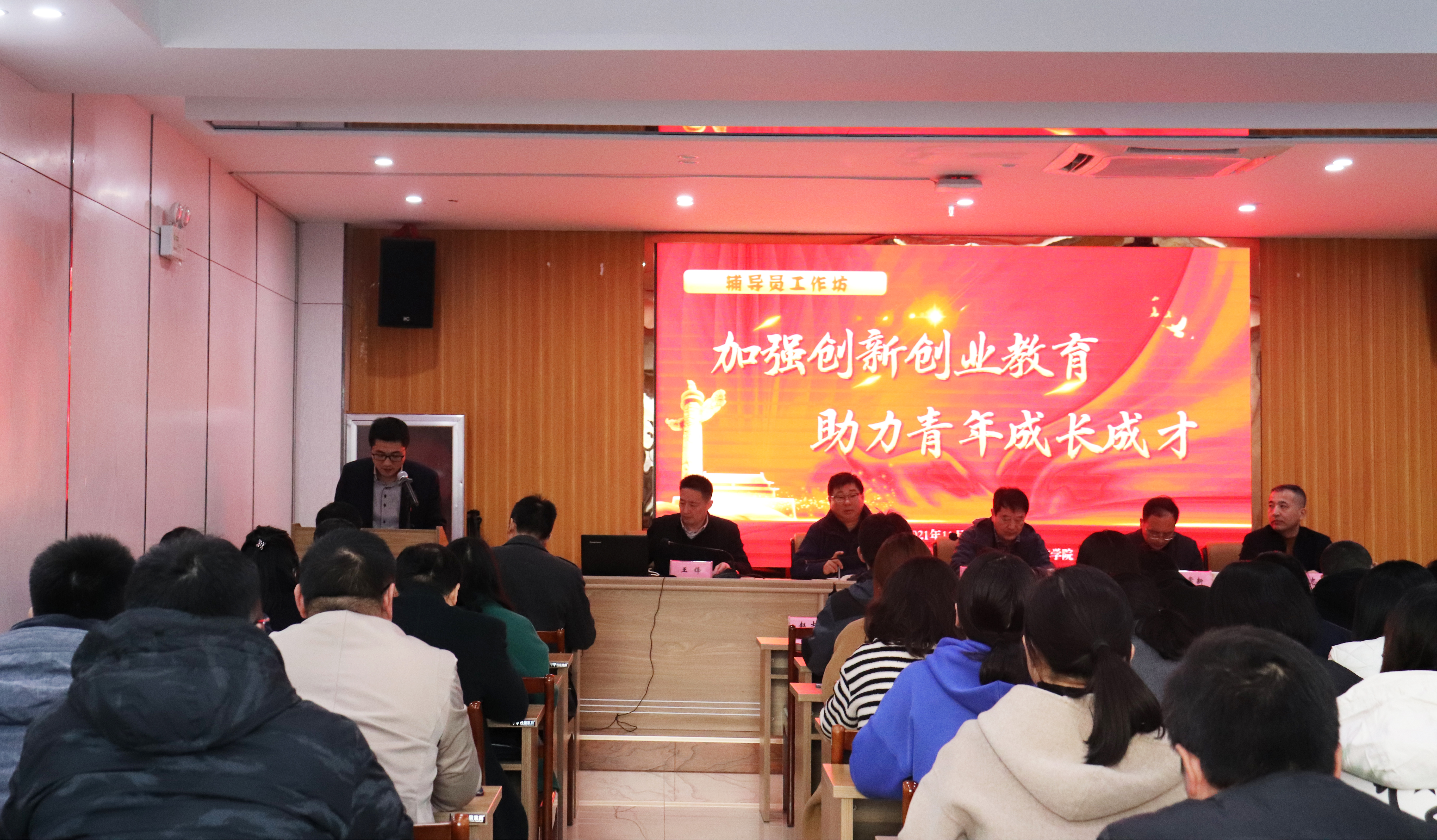为进一步加强员工创新创业教育工作研究与探索,推进创新创业教育与思想政治教育相融合,11月11日下午,由学工处主办、EVO真人视讯承办的2021年秋季学期第二期辅导员工作坊在萧湖校区文博楼一楼报告厅举行。本期工作坊以“加强创新创业教育,助力青年成长成才”为主题,党委常委、副董事长朱晓文出席并讲话。