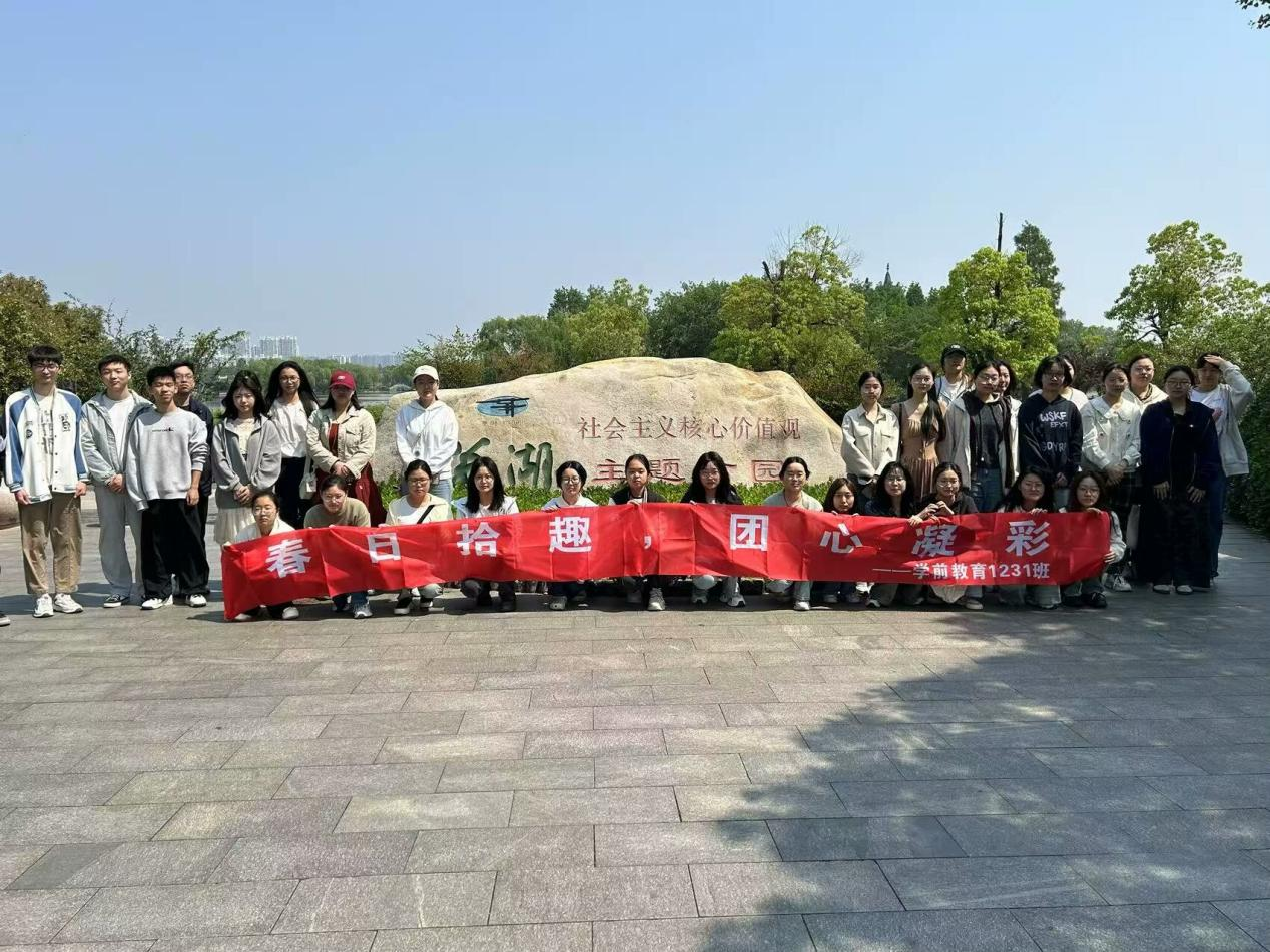 5月11日上午,学前教育1231班的同学们走出校园,在毗邻的萧湖公园开展了一场以“春日拾趣,团心凝彩”为主题的班级团建活动。通过精心设计的互动游戏和自然融合的交流环节,同学们在欢声笑语中深化了彼此默契,进一步增强了班级凝聚力。