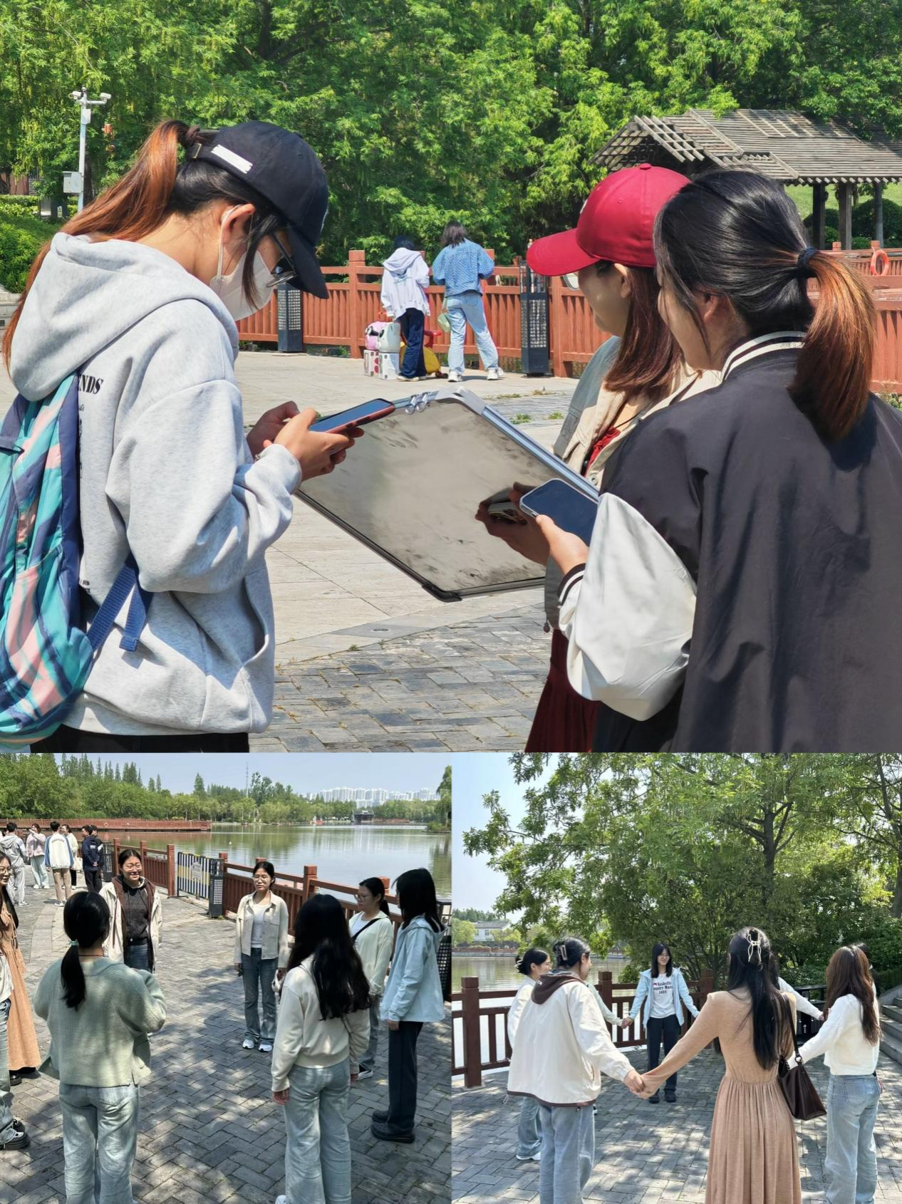 初夏的萧湖公园绿意盎然,湖水映衬着蓝天,为活动增添了轻松愉快的氛围。班级成员们先是展开自由活动,大家漫步于湖畔,感受春末夏初的萧湖风光——新荷初绽、柳影婆娑,自然景致与青春活力相映成趣。在此之后,同学们共同参与了两项精心设计的团队游戏。首先以轻松活泼的“你画我猜”游戏拉开序幕,同学们自由组队后,通过肢体语言和简笔绘画传递关键词,考验团队的理解与协作能力,默契配合中笑声不断。