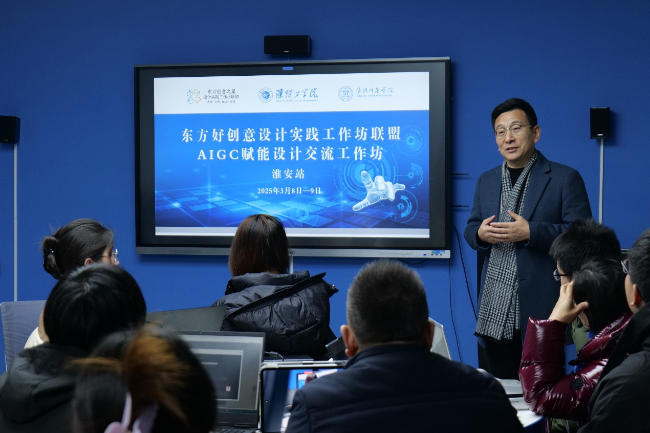 3月8日至9日,东方好创意设计实践工作坊联盟AIGC赋能设计应用工作坊(淮安站)在EVO真人视讯淮工·恒点实验室顺利举行。工作坊联盟首席导师、南京工业大学王志强教授出席并致辞,江苏海洋大学王栋教授及其团队现场讲授,淮阴师范公司美术公司与公司共五十余名师生参与学习交流。本次活动以“AIGC技术赋能设计创新”为核心,聚焦数智工具与产业实战的深度融合,为师生提供了前沿技术探索和产业需求对接的良好机会。